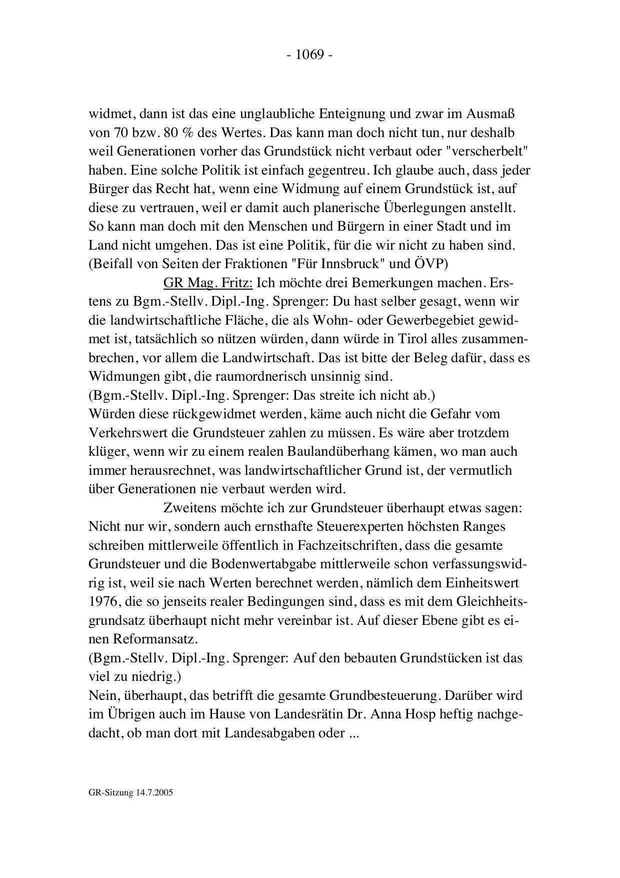 GR Mag. Fritz: Ich möchte drei Bemerkungen machen. Erstens zu Bgm.-Stellv. Dipl.-Ing. Sprenger: Du hast selber gesagt, wenn wir