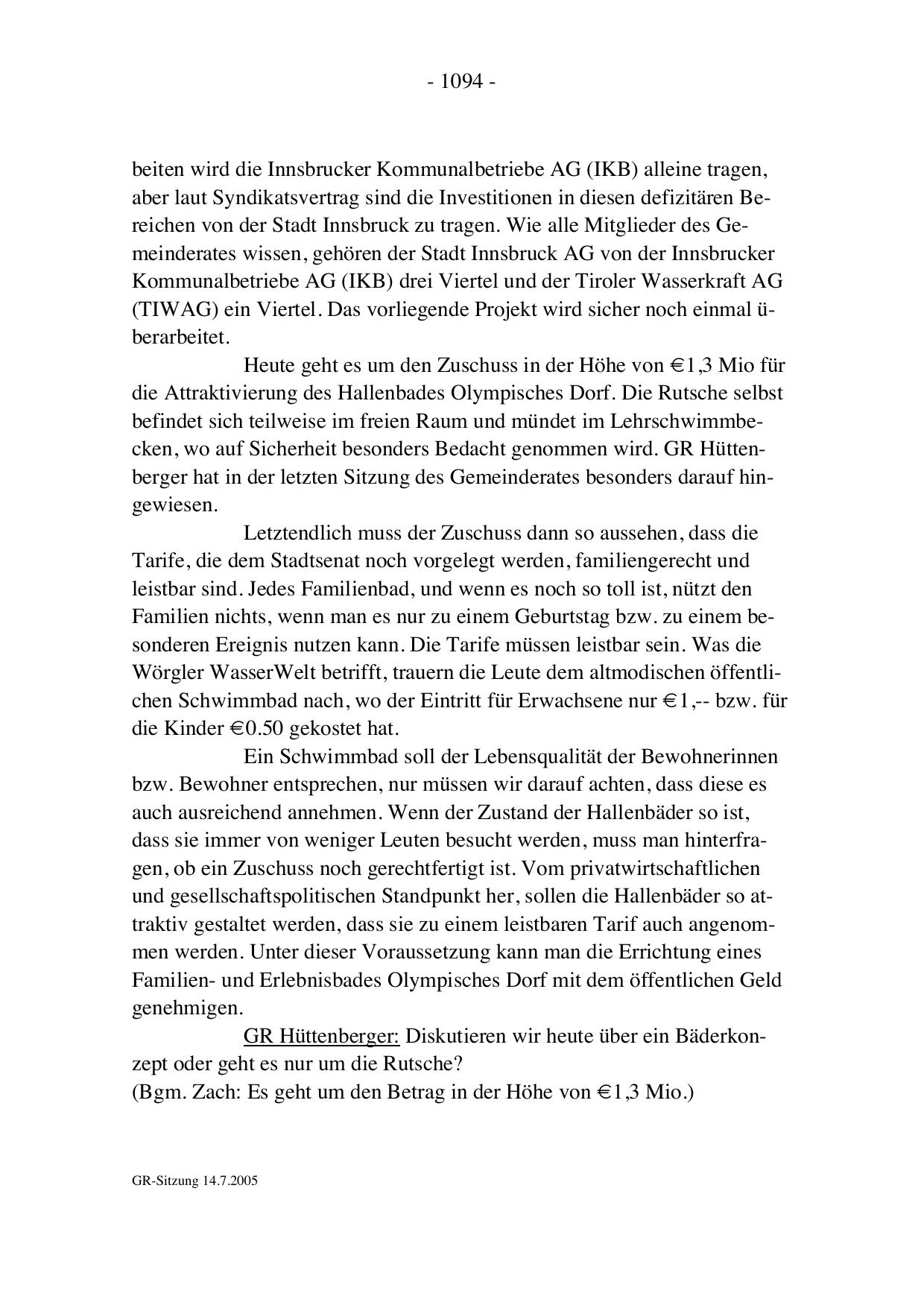GR Hüttenberger: Diskutieren wir heute über ein Bäderkonzept oder geht es nur um die Rutsche?