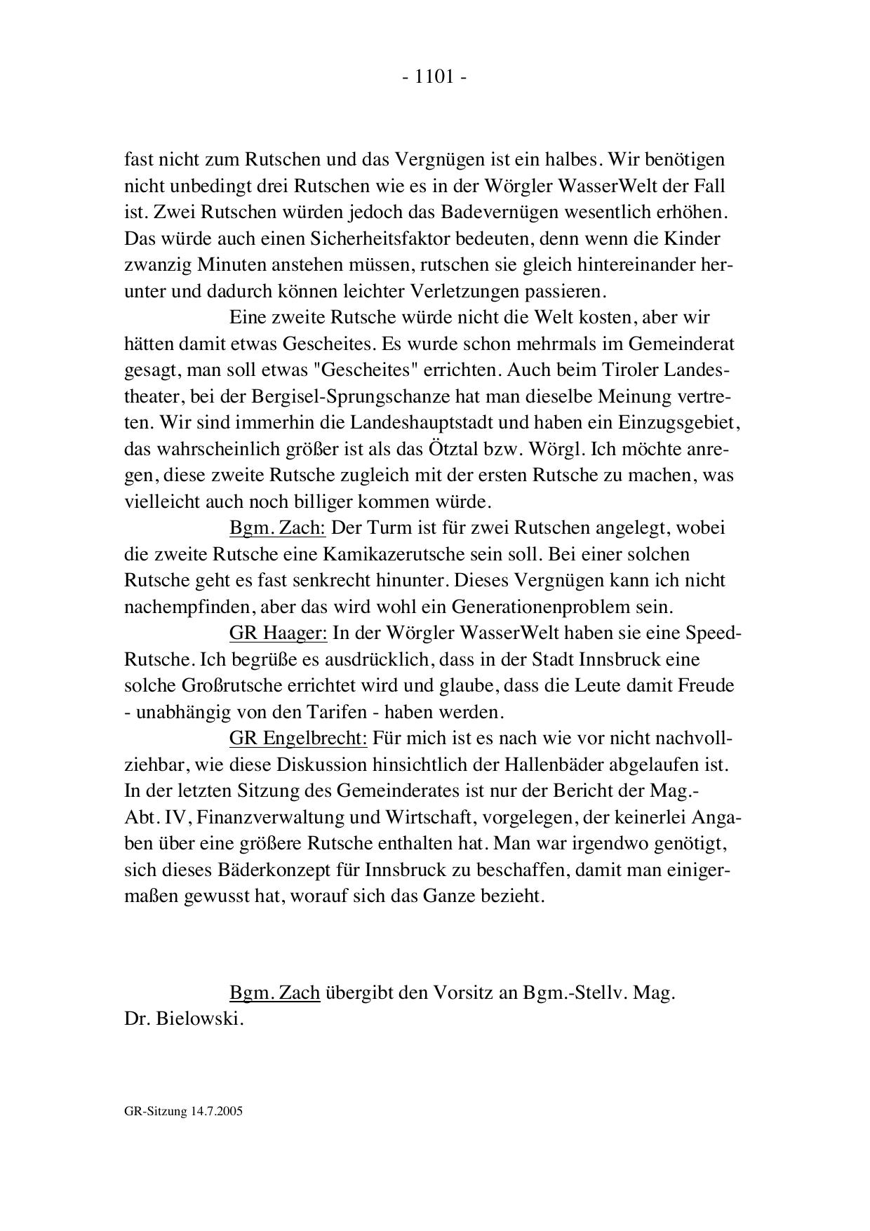 In der letzten Sitzung des Gemeinderates ist nur der Bericht der Mag.Abt. IV, Finanzverwaltung und Wirtschaft, vorgelegen, der keinerlei Angaben über eine größere Rutsche enthalten hat. Man war irgendwo genötigt,