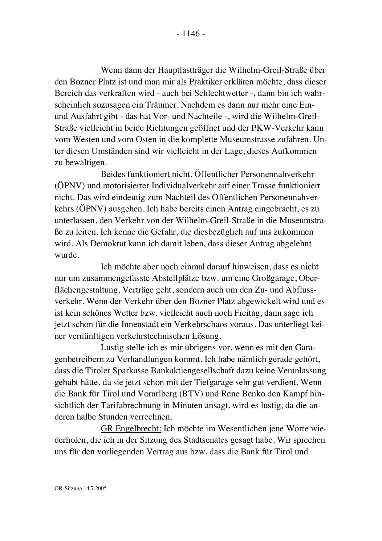 unterlassen, den Verkehr von der Wilhelm-Greil-Straße in die Museumstraße zu leiten. Ich kenne die Gefahr, die diesbezüglich auf uns zukommen