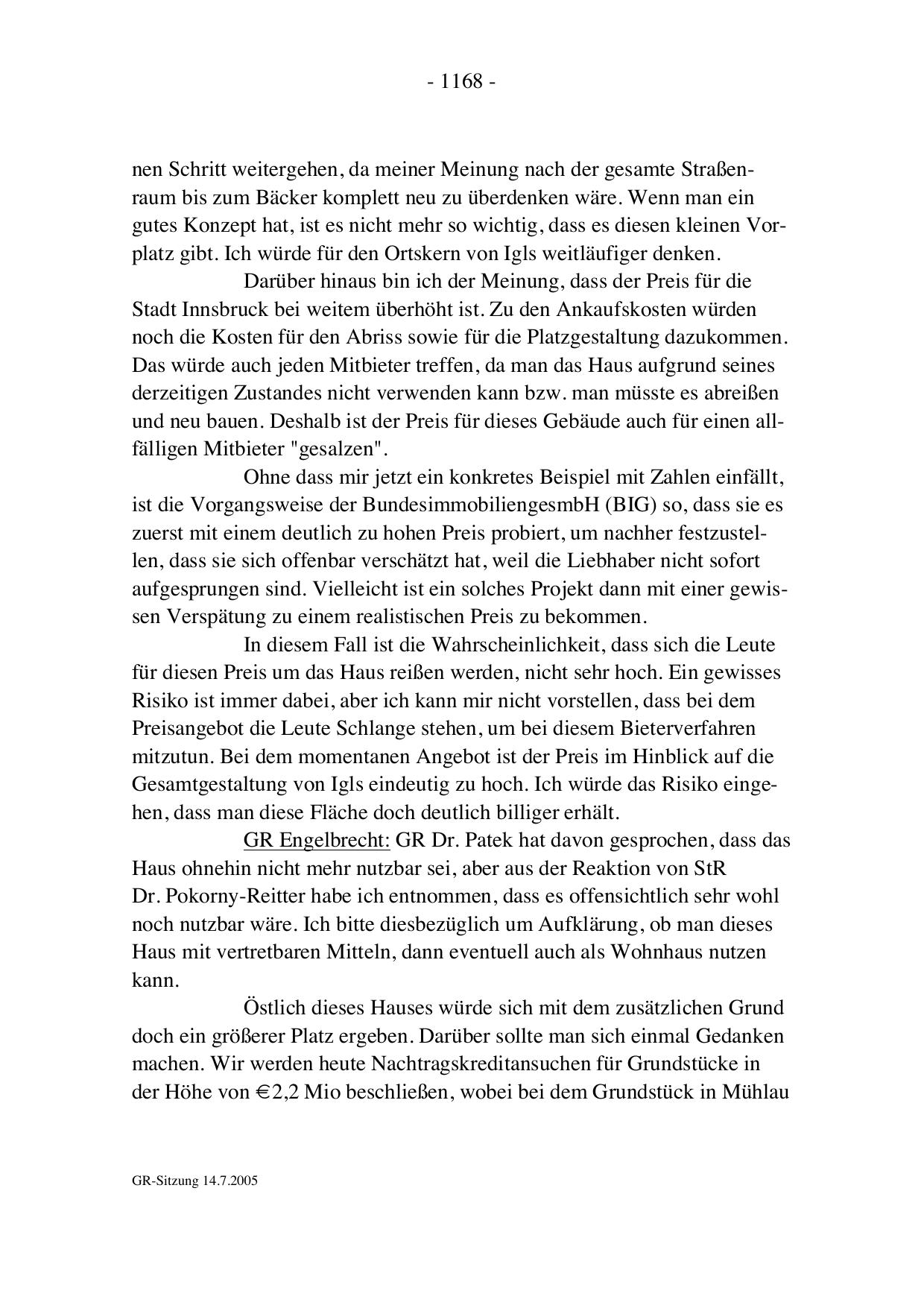 gutes Konzept hat, ist es nicht mehr so wichtig, dass es diesen kleinen Vorplatz gibt. Ich würde für den Ortskern von Igls weitläufiger denken.