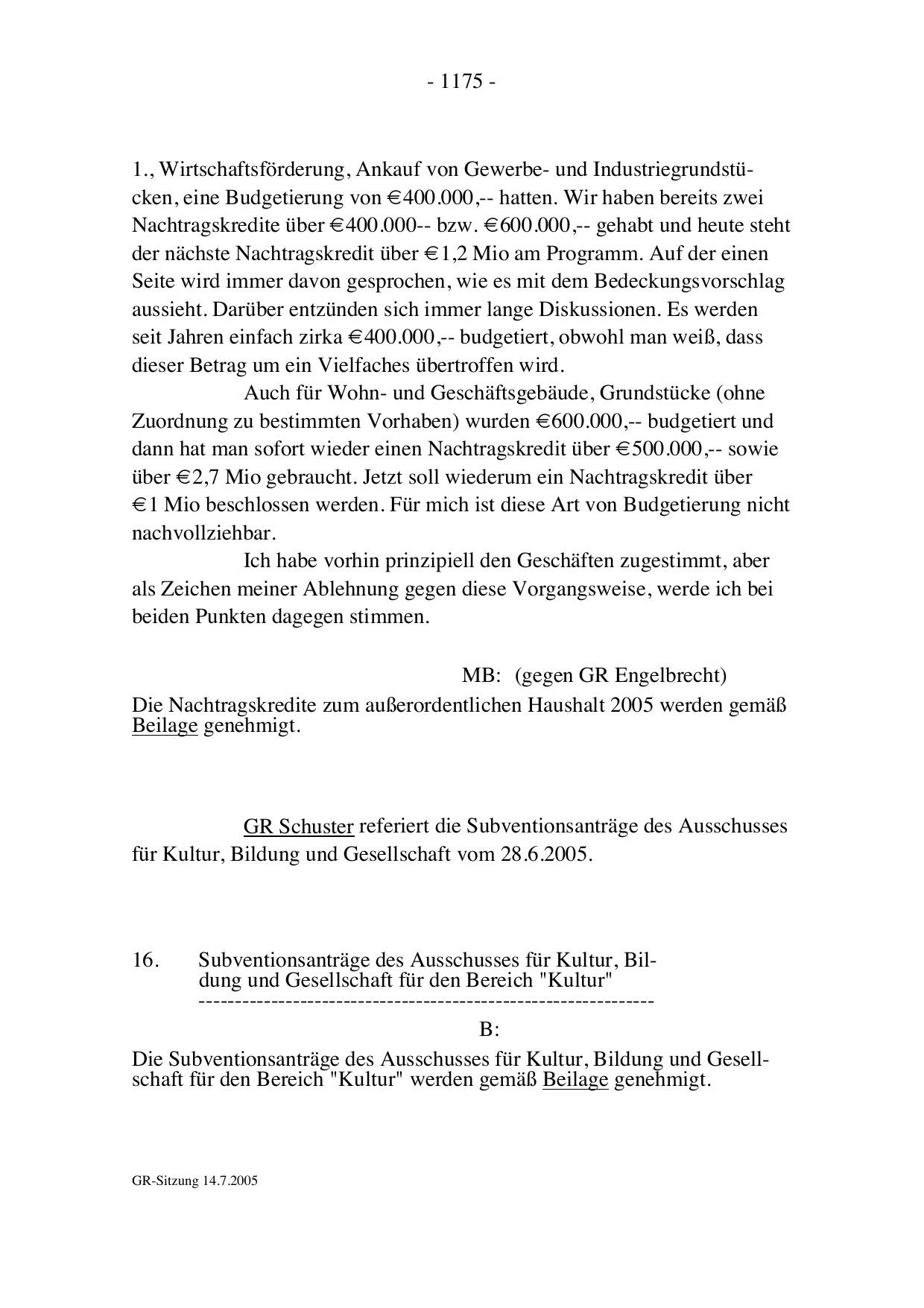 1., Wirtschaftsförderung, Ankauf von Gewerbe- und Industriegrundstücken, eine Budgetierung von € 400.000,-- hatten. Wir haben bereits zwei