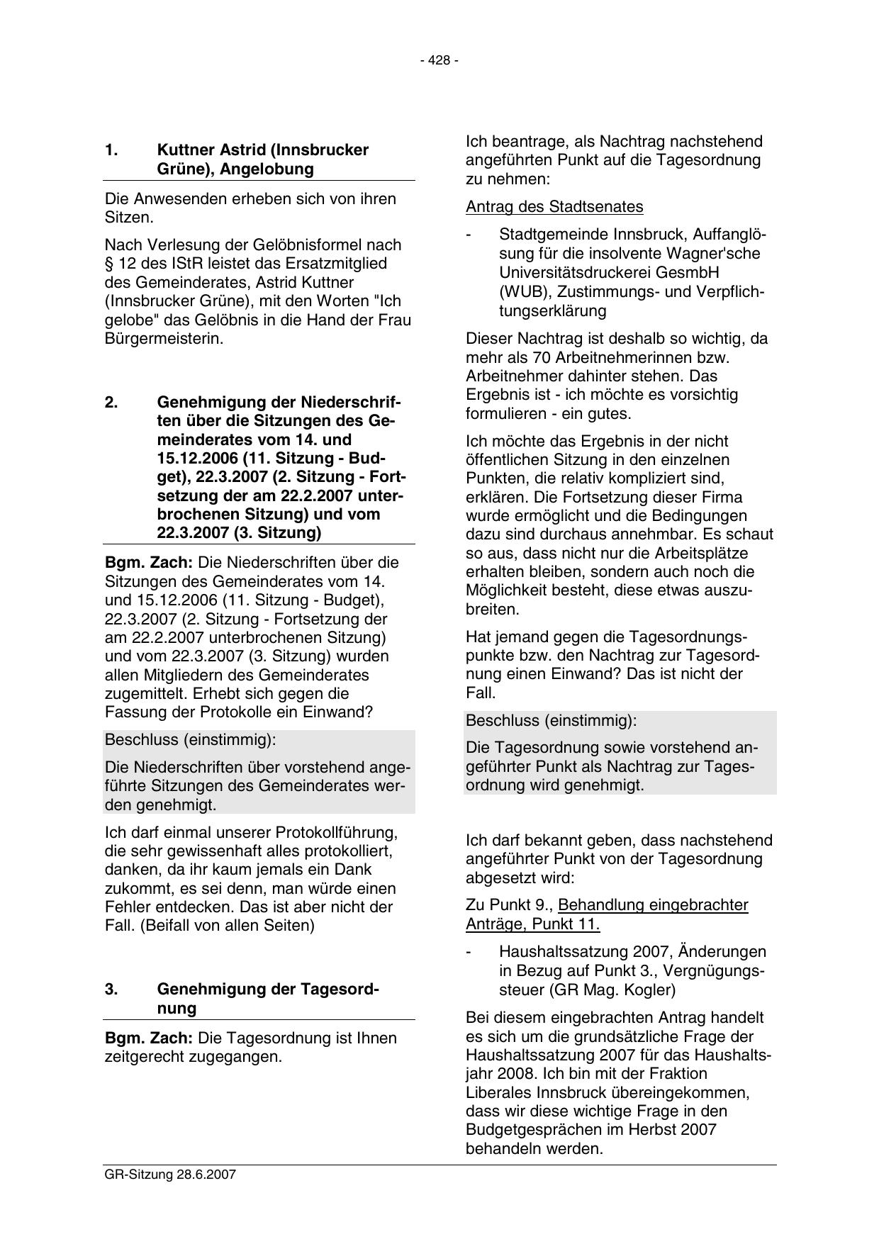 15.12.2006 (11. Sitzung - Budget), 22.3.2007 (2. Sitzung - Fortsetzung der am 22.2.2007 unterbrochenen Sitzung) und vom