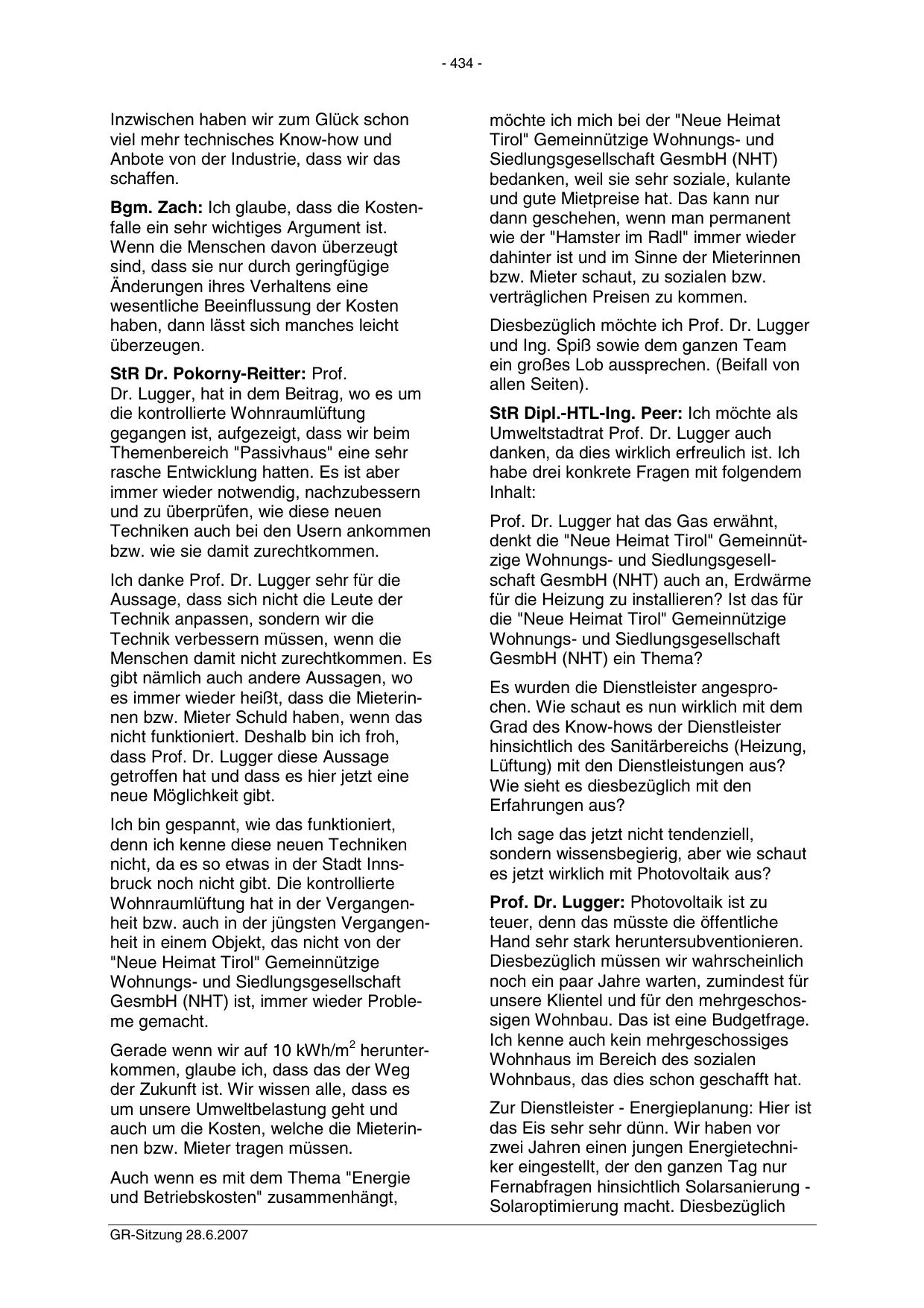 Diesbezüglich möchte ich Prof. Dr. Lugger