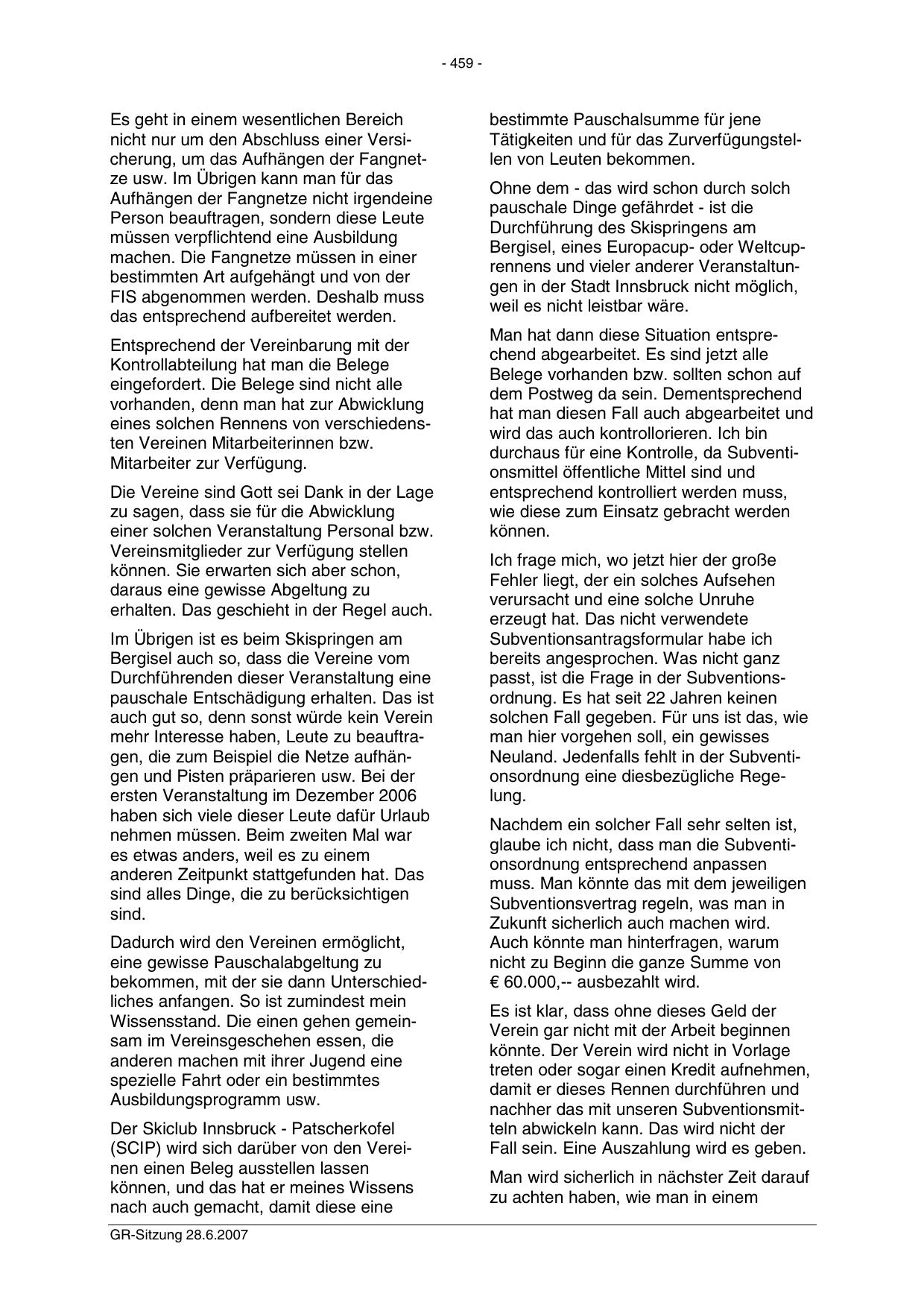(SCIP) wird sich darüber von den Vereinen einen Beleg ausstellen lassen