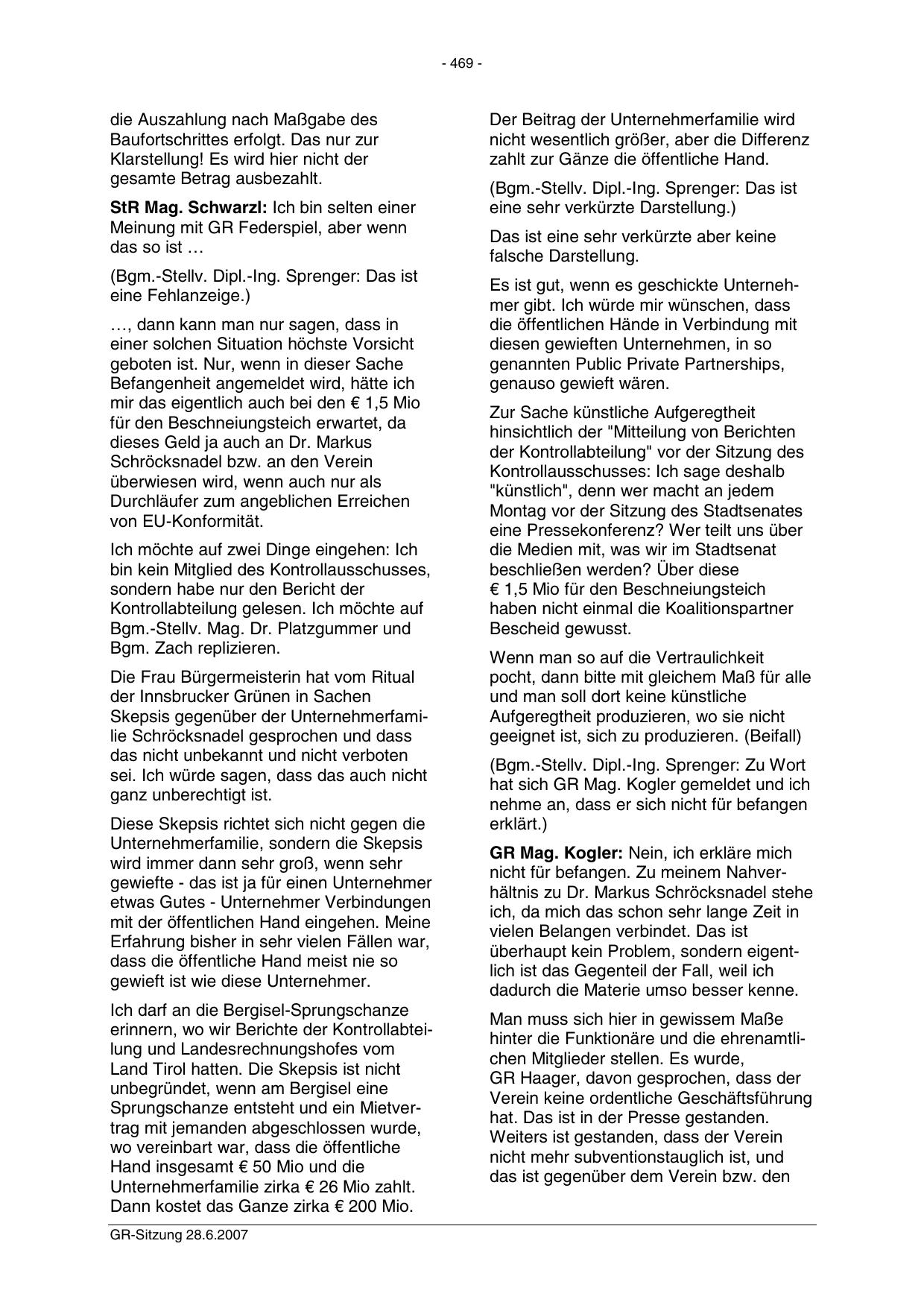 Skepsis gegenüber der Unternehmerfamilie Schröcksnadel gesprochen und dass