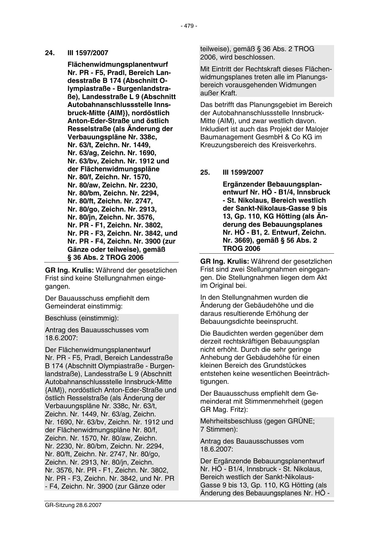 13, Gp. 110, KG Hötting (als Änderung des Bebauungsplanes