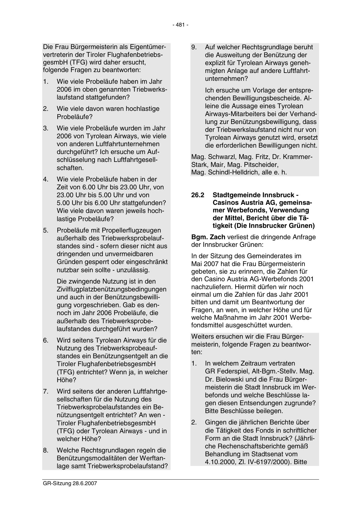 Die Frau Bürgermeisterin als Eigentümervertreterin der Tiroler FlughafenbetriebsgesmbH (TFG) wird daher ersucht,