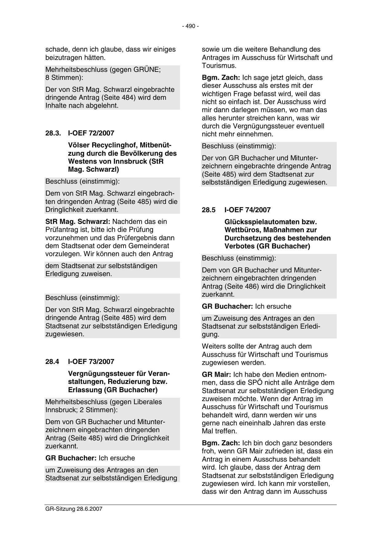 Dem von StR Mag. Schwarzl eingebrachten dringenden Antrag (Seite 485) wird die