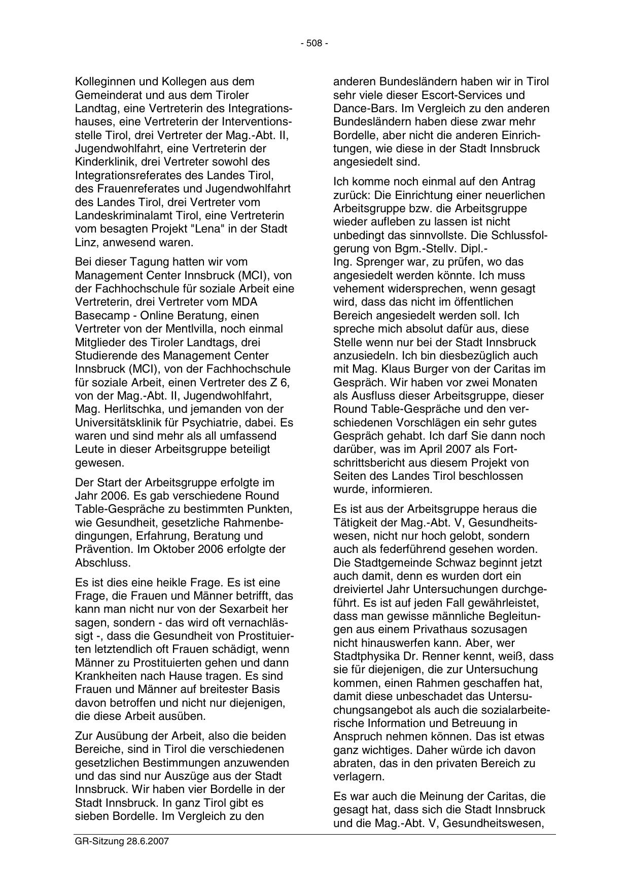 Landtag, eine Vertreterin des Integrationshauses, eine Vertreterin der Interventionsstelle Tirol, drei Vertreter der Mag.-Abt. II,