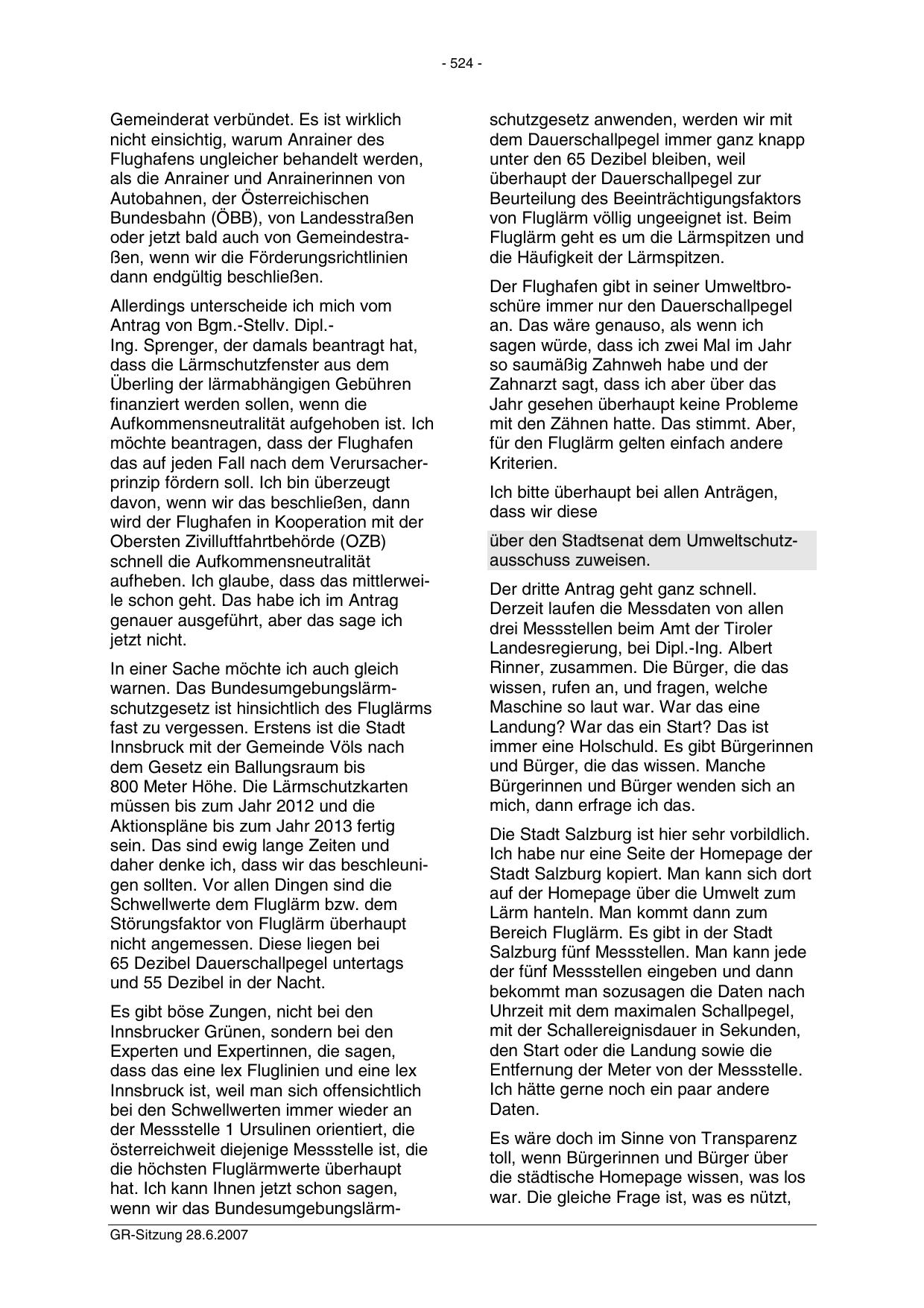 wenn wir das BundesumgebungslärmGR-Sitzung 28.6.2007