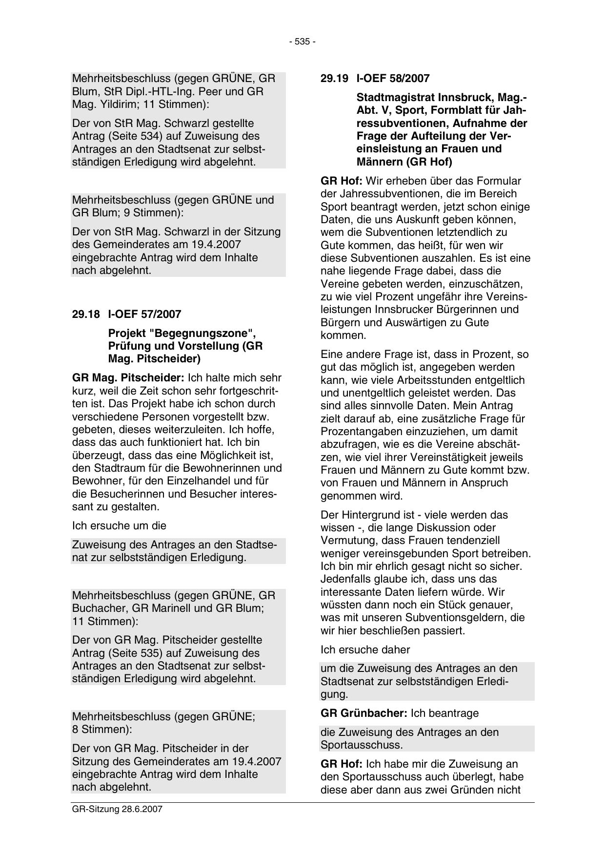 Mehrheitsbeschluss (gegen GRÜNE, GR