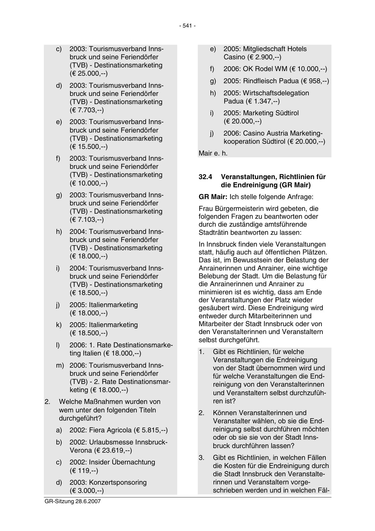 oder ob sie sie von der Stadt Innsbruck durchführen lassen?