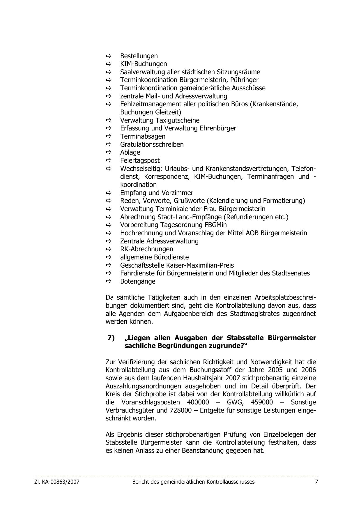 Stabsstelle Bürgermeister kann die Kontrollabteilung festhalten, dass