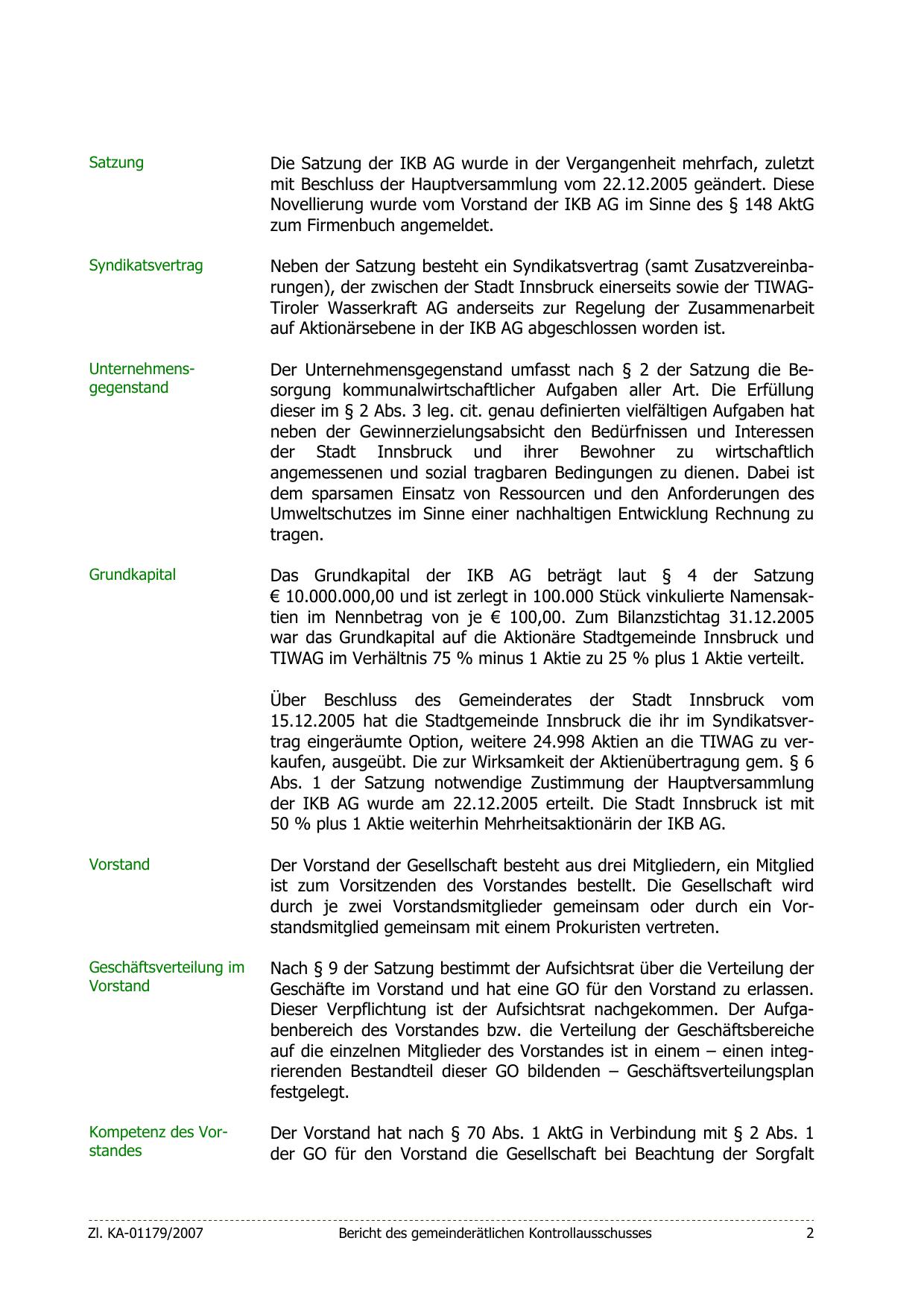 der IKB AG wurde am 22.12.2005 erteilt. Die Stadt Innsbruck ist mit