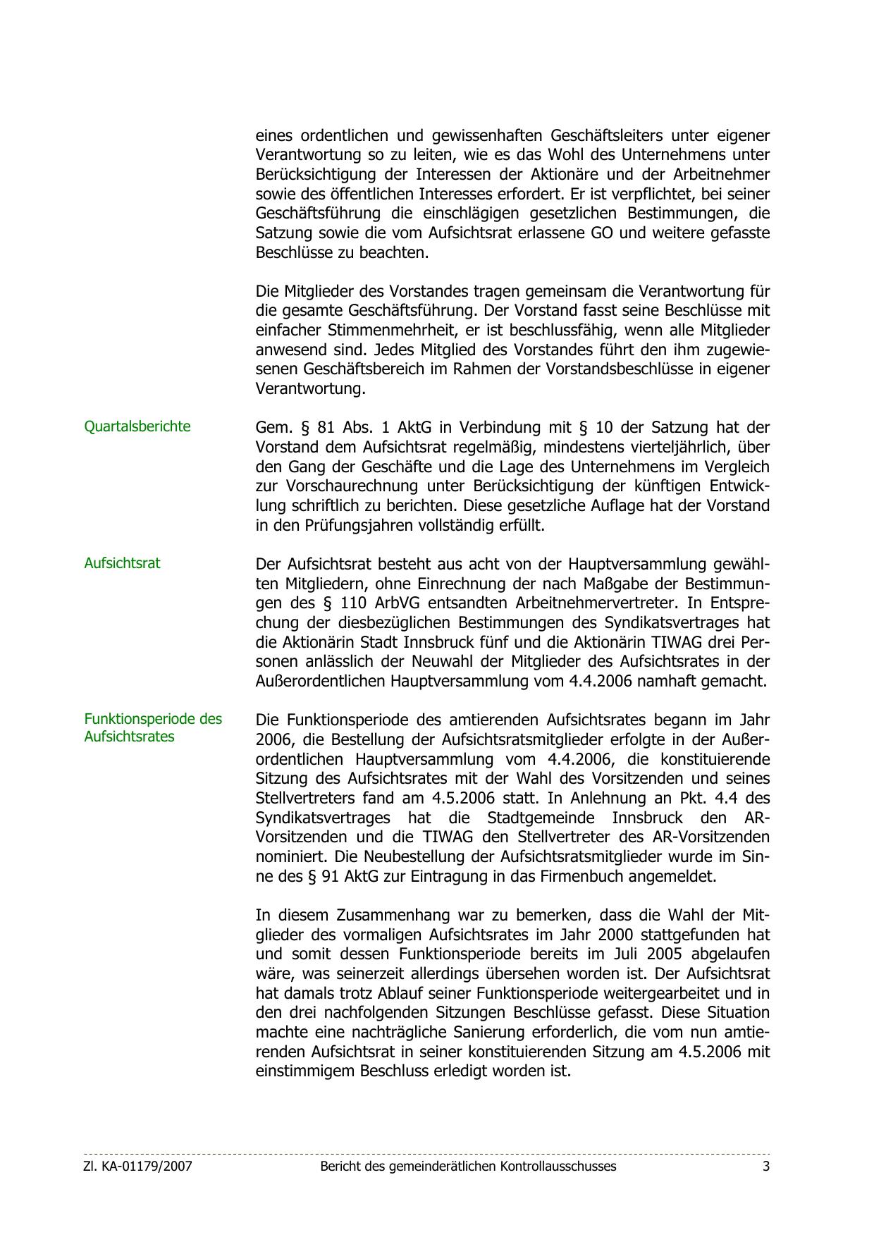 Syndikatsvertrages hat die Stadtgemeinde Innsbruck den ARVorsitzenden und die TIWAG den Stellvertreter des AR-Vorsitzenden