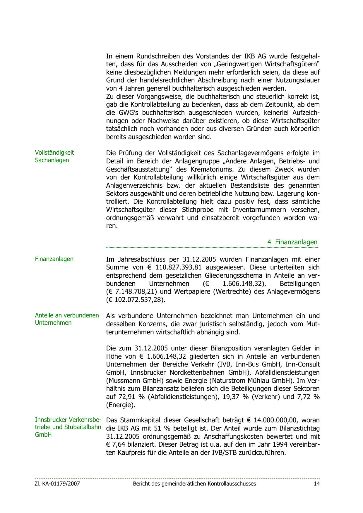 triebe und Stubaitalbahn die IKB AG mit 51 % beteiligt ist. Der Anteil wurde zum Bilanzstichtag