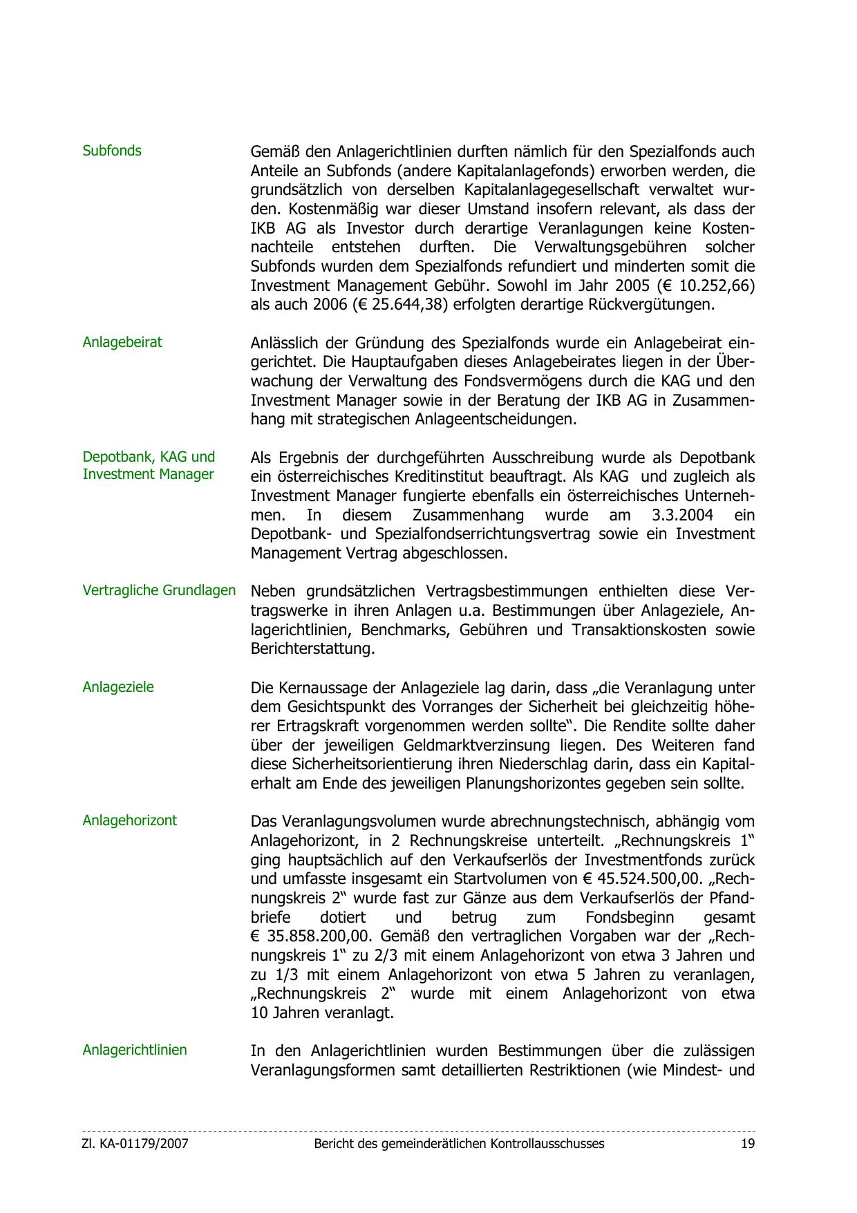 Neben grundsätzlichen Vertragsbestimmungen enthielten diese Vertragswerke in ihren Anlagen u.a. Bestimmungen über Anlageziele, Anlagerichtlinien, Benchmarks, Gebühren und Transaktionskosten sowie