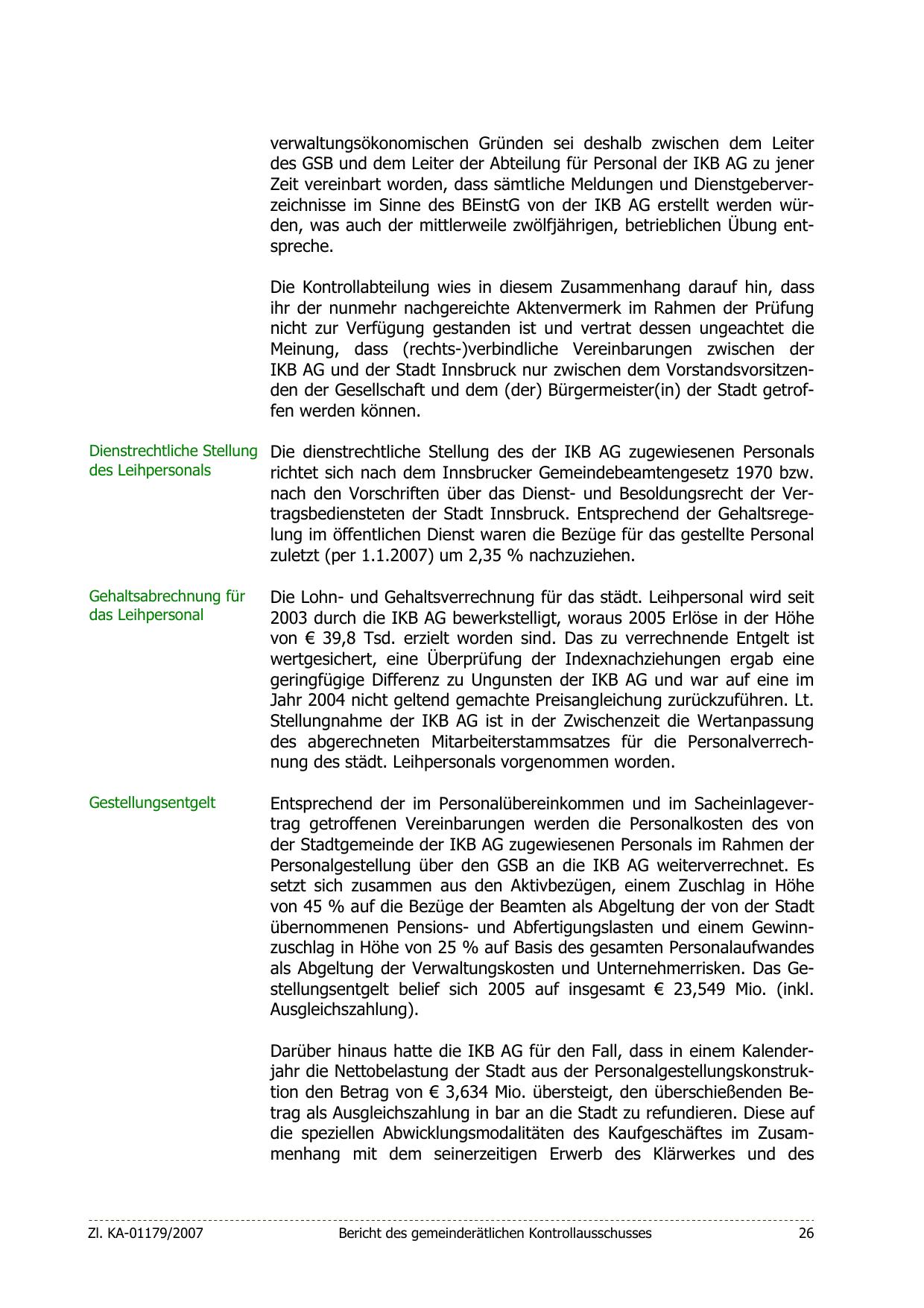 IKB AG und der Stadt Innsbruck nur zwischen dem Vorstandsvorsitzenden der Gesellschaft und dem (der) Bürgermeister(in) der Stadt getroffen werden können.