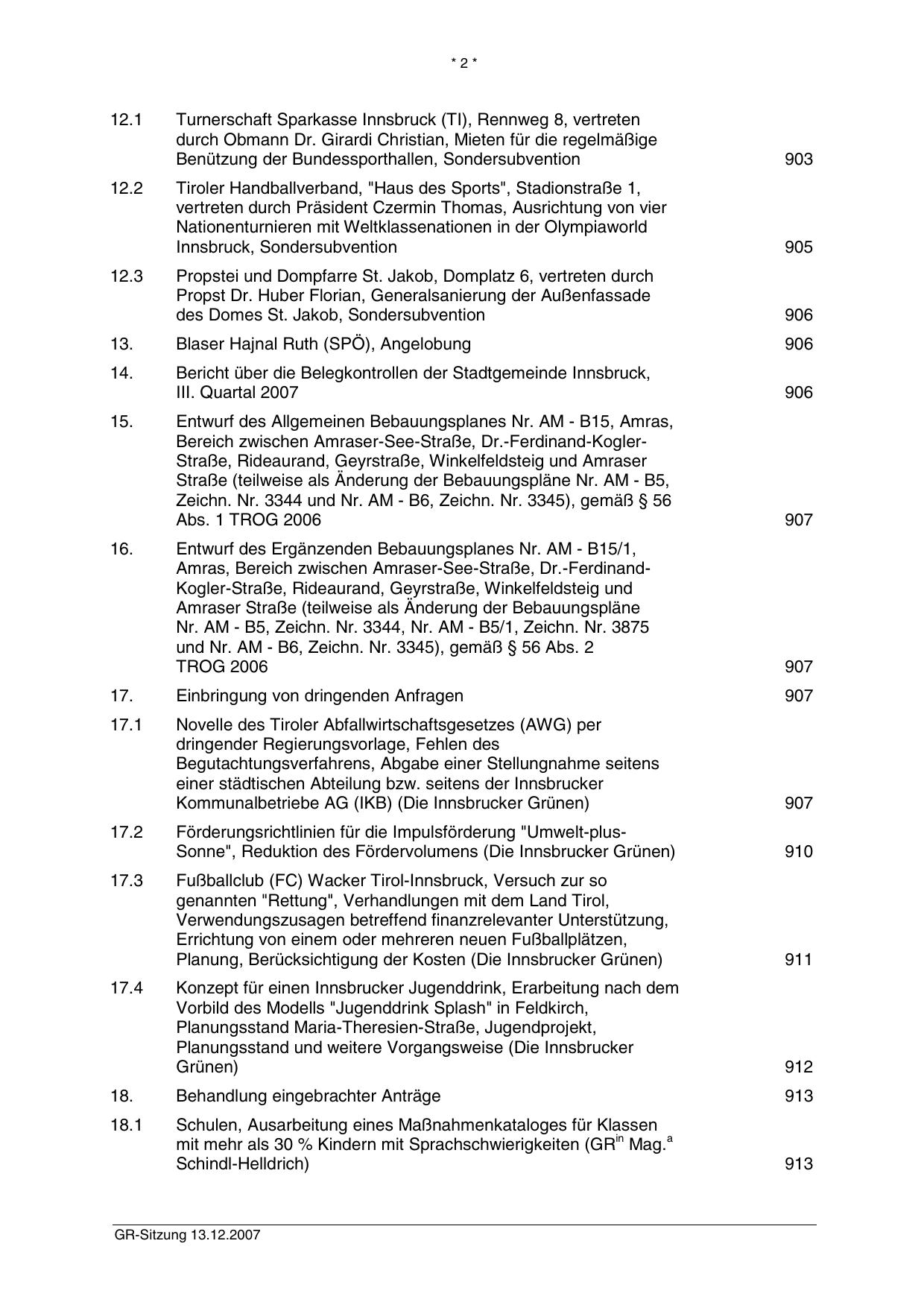 Bericht über die Belegkontrollen der Stadtgemeinde Innsbruck,