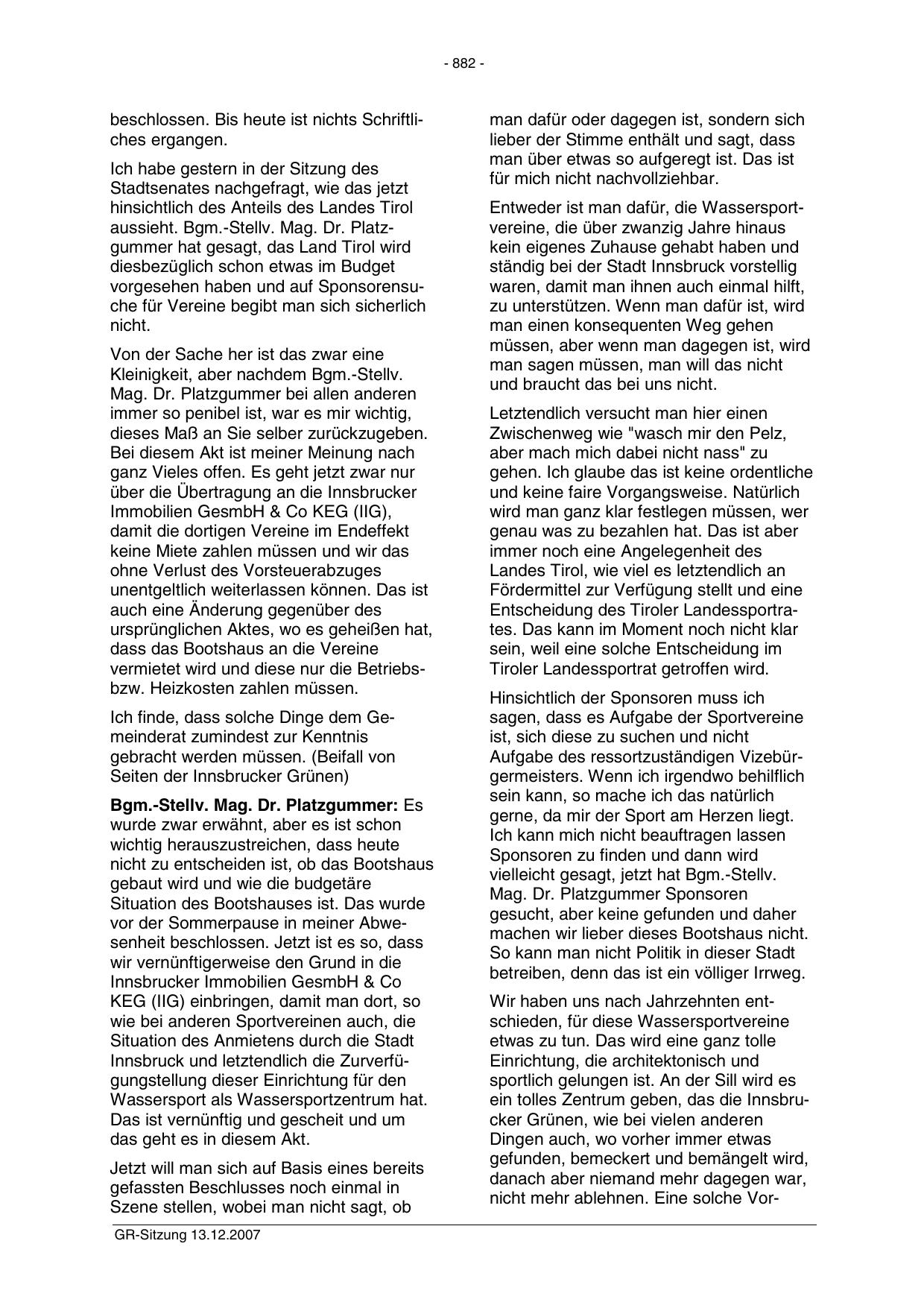 Bgm.-Stellv. Mag. Dr. Platzgummer: Es