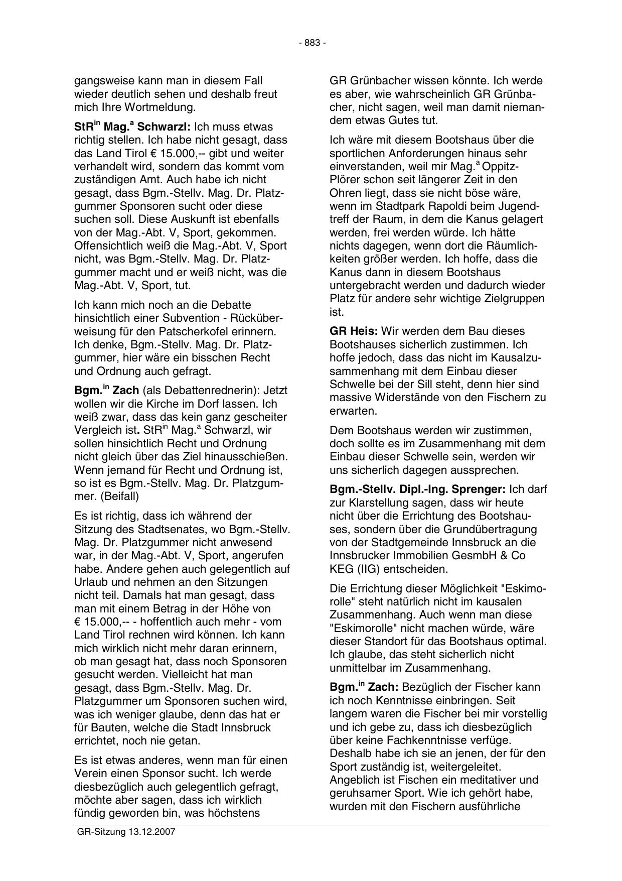 Ich denke, Bgm.-Stellv. Mag. Dr. Platzgummer, hier wäre ein bisschen Recht