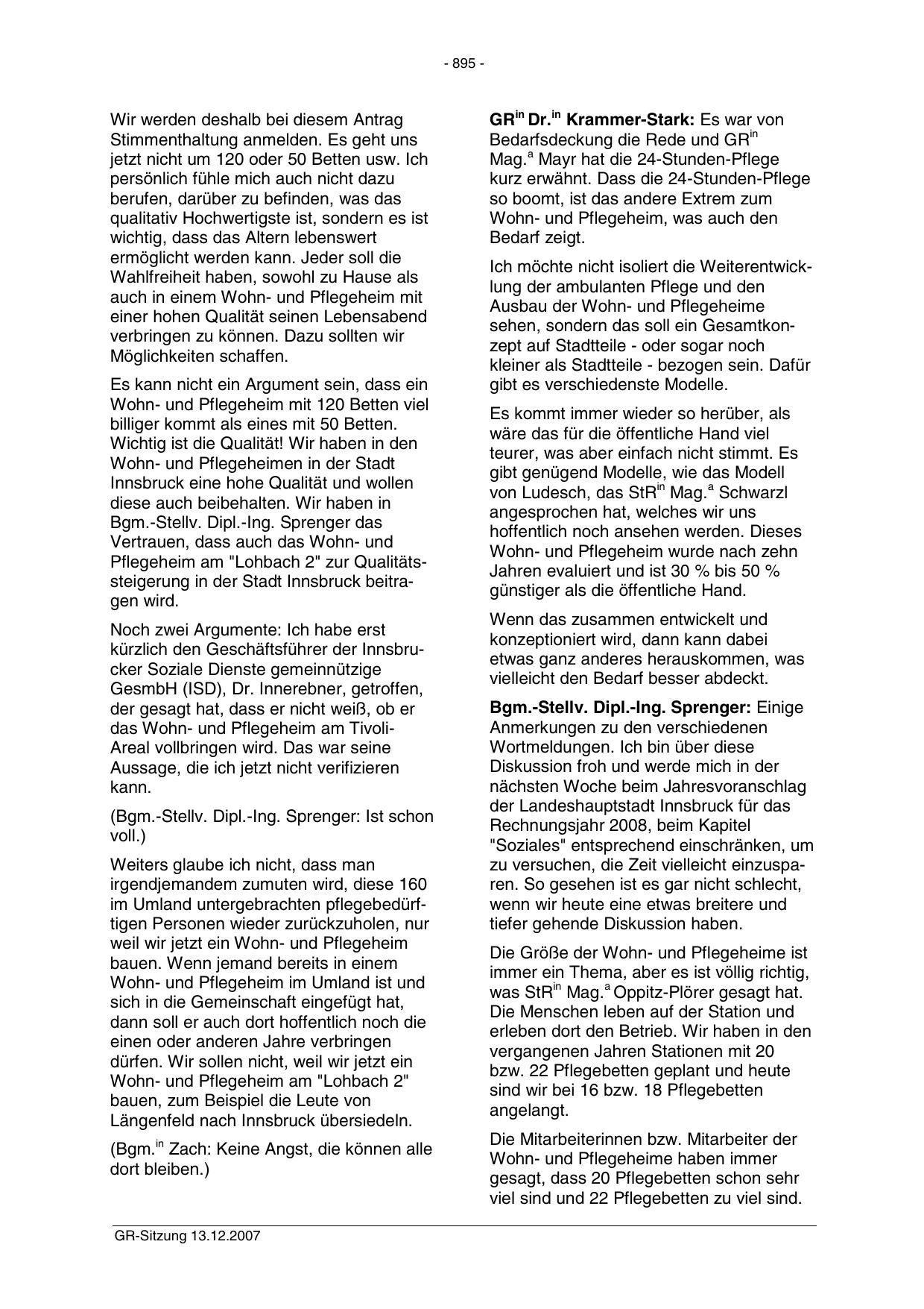 Pflegeheim am "Lohbach 2" zur Qualitätssteigerung in der Stadt Innsbruck beitragen wird.