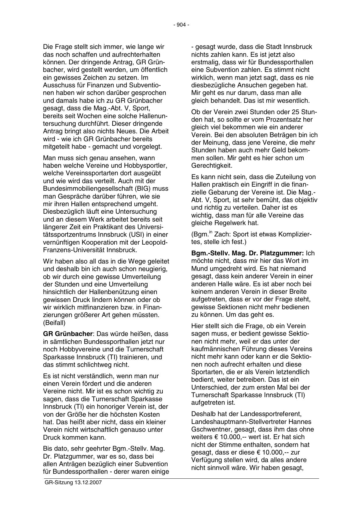 Bgm.-Stellv. Mag. Dr. Platzgummer: Ich