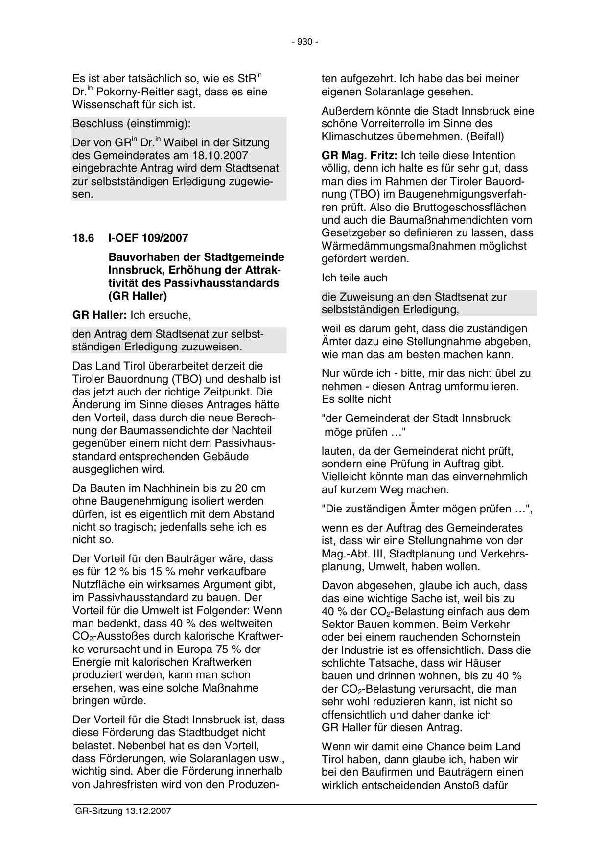 von Jahresfristen wird von den ProduzenGR-Sitzung 13.12.2007