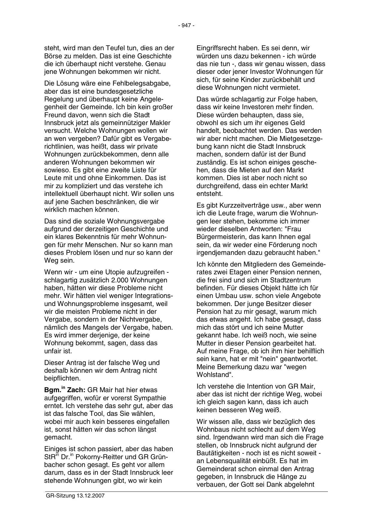 wir aber nicht machen. Die Mietgesetzgebung kann nicht die Stadt Innsbruck