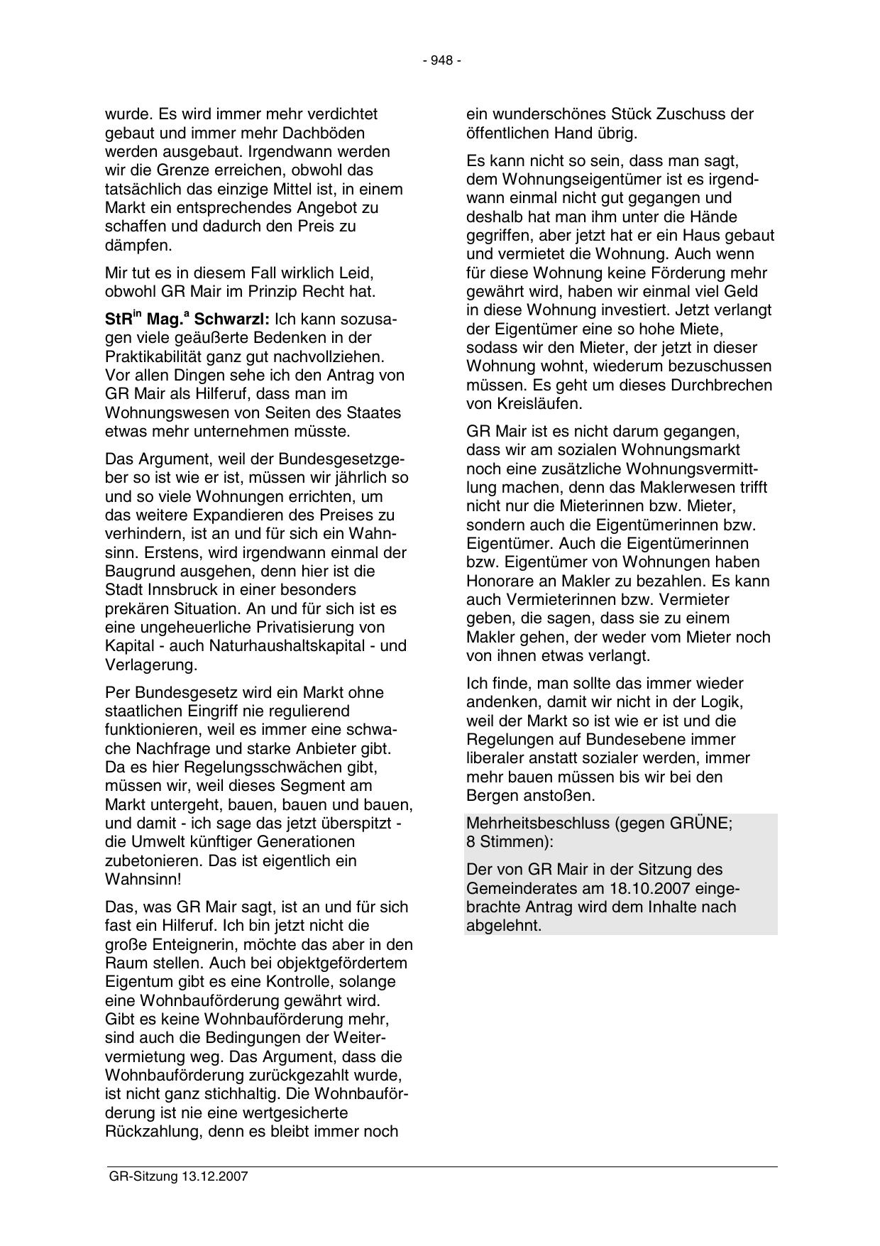 Gemeinderates am 18.10.2007 eingebrachte Antrag wird dem Inhalte nach
