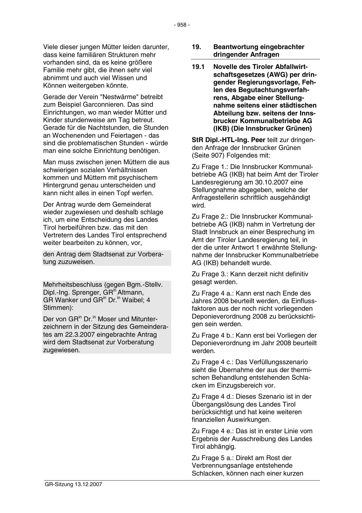 StR Dipl.-HTL-Ing. Peer teilt zur dringenden Anfrage der Innsbrucker Grünen
