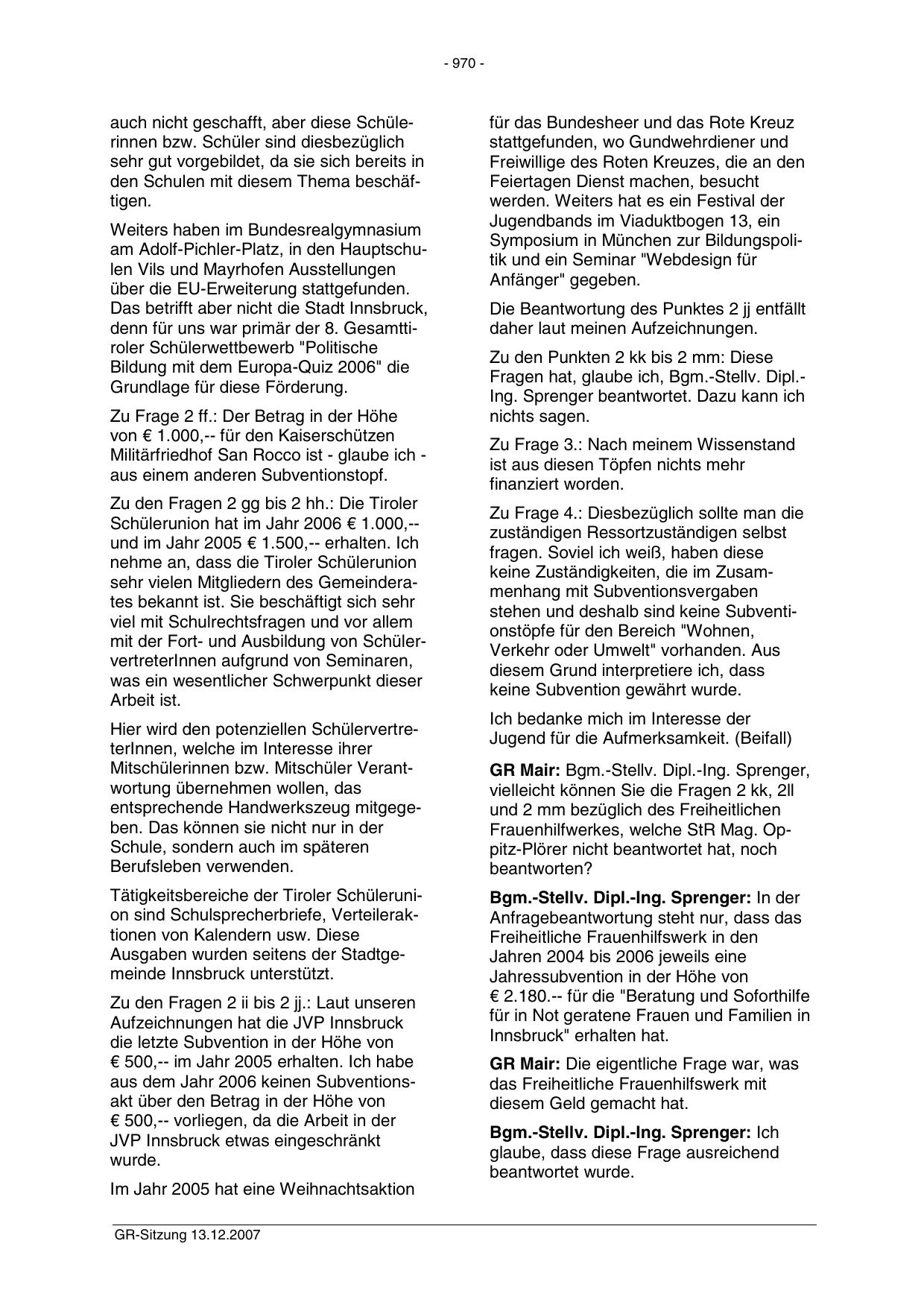 Frauenhilfwerkes, welche StR Mag. Oppitz-Plörer nicht beantwortet hat, noch
