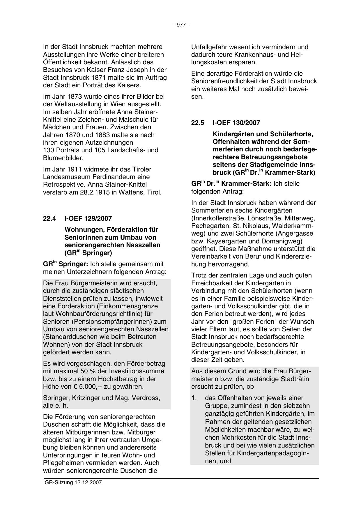 seitens der Stadtgemeinde Innsbruck (GRin Dr.in Krammer-Stark)