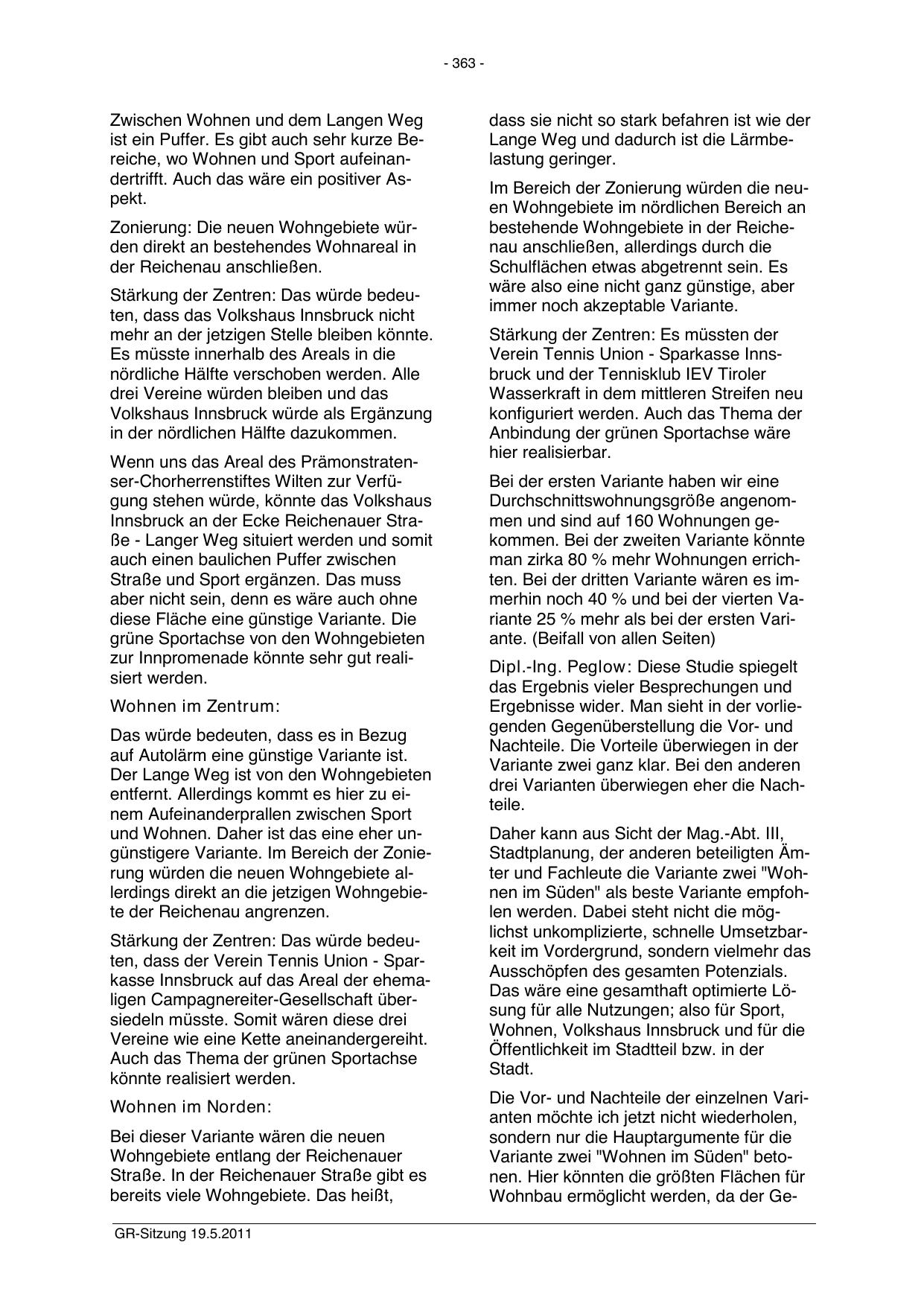 und Wohnen. Daher ist das eine eher ungünstigere Variante. Im Bereich der Zonierung würden die neuen Wohngebiete allerdings direkt an die jetzigen Wohngebiete der Reichenau angrenzen.