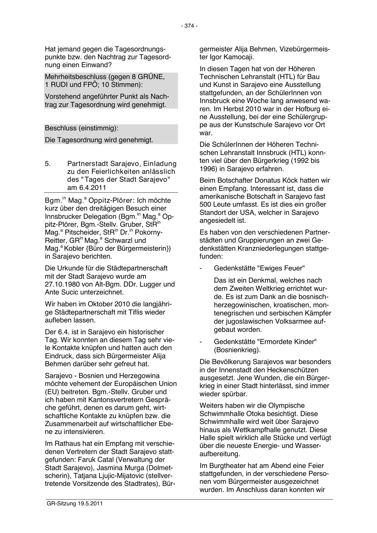 Mehrheitsbeschluss (gegen 8 GRÜNE,