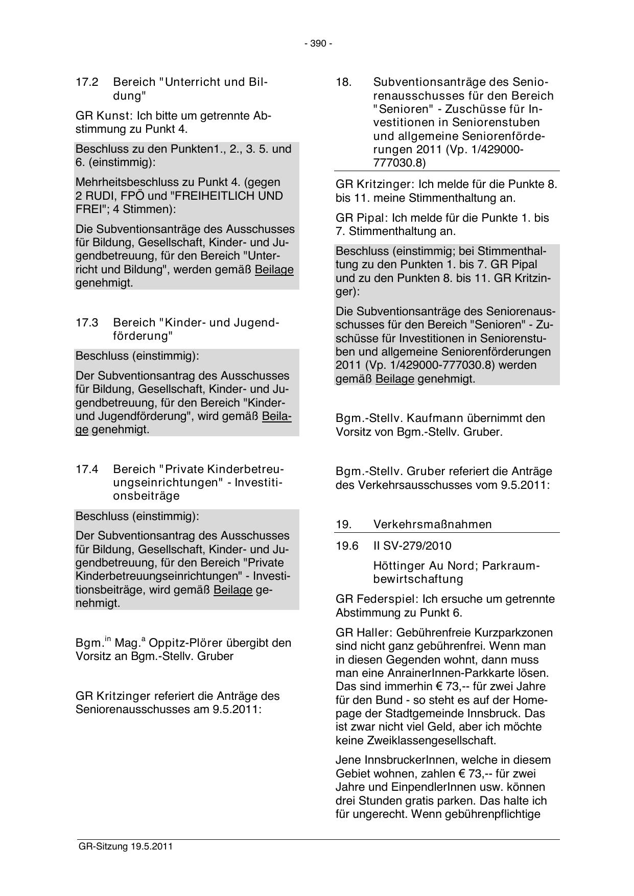 Beschluss (einstimmig; bei Stimmenthaltung zu den Punkten 1. bis 7. GR Pipal