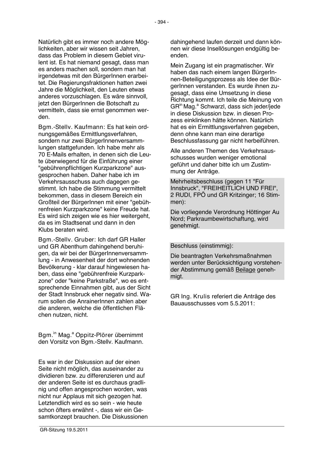 der Stadt Innsbruck eher negativ sind. Warum sollen die AnrainerInnen zahlen aber