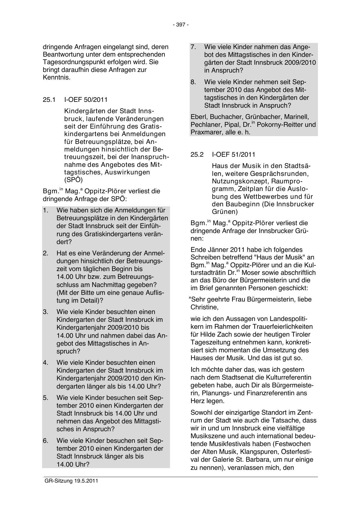 Bgm.in Mag.a Oppitz-Plörer und an die Kulturstadträtin Dr.in Moser sowie abschriftlich
