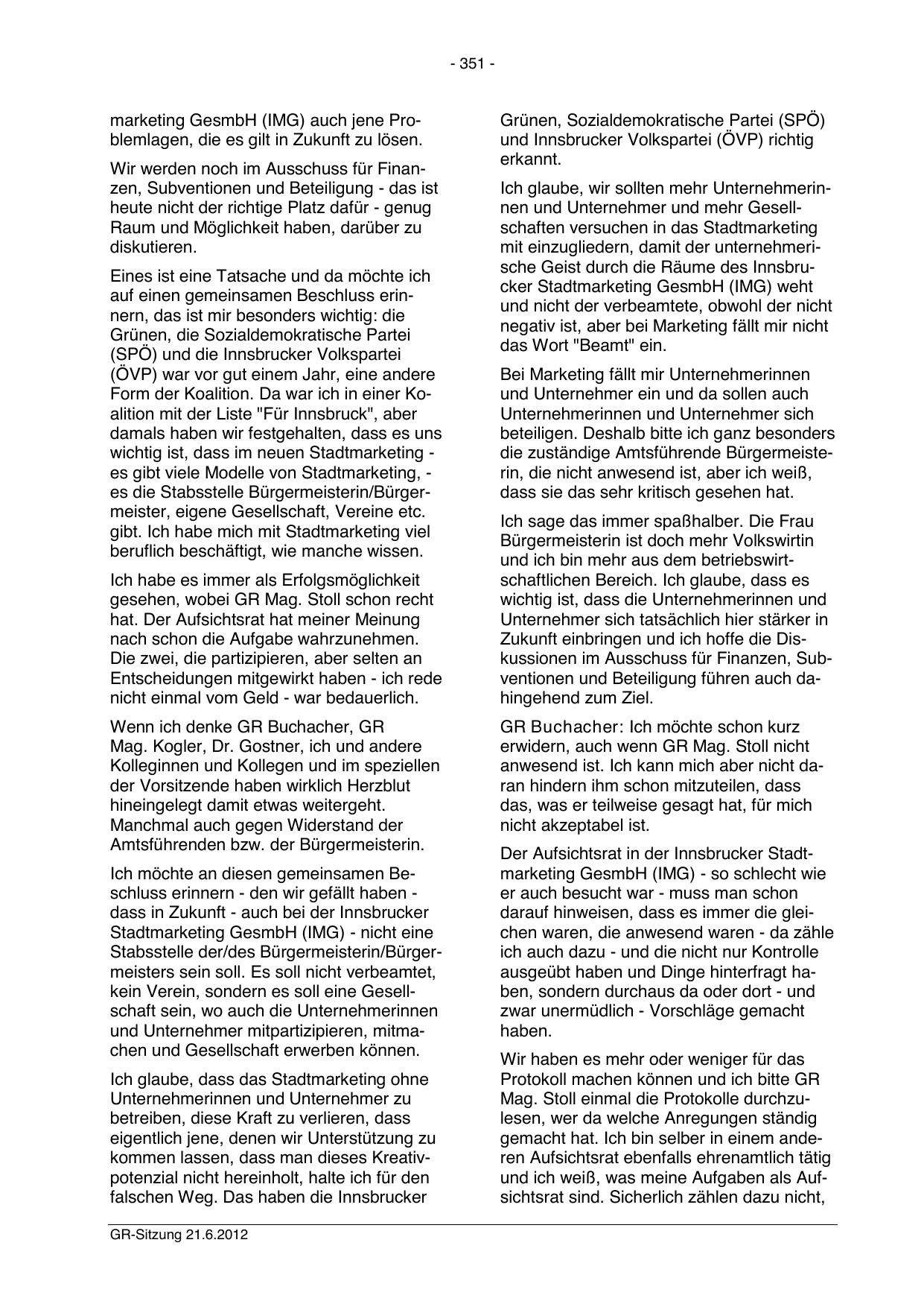 Ich möchte an diesen gemeinsamen Beschluss erinnern - den wir gefällt haben dass in Zukunft - auch bei der Innsbrucker