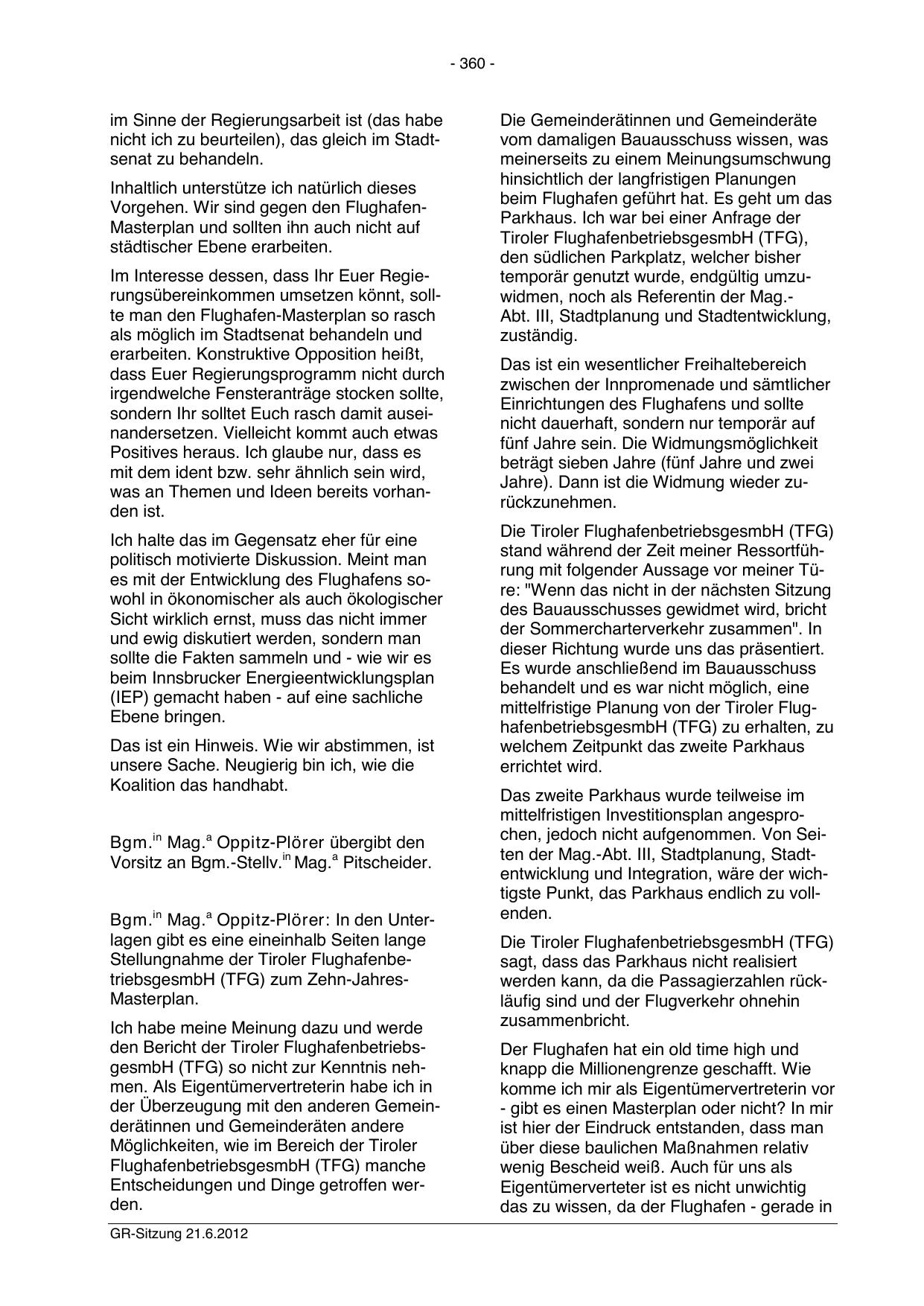 den Bericht der Tiroler FlughafenbetriebsgesmbH (TFG) so nicht zur Kenntnis nehmen. Als Eigentümervertreterin habe ich in