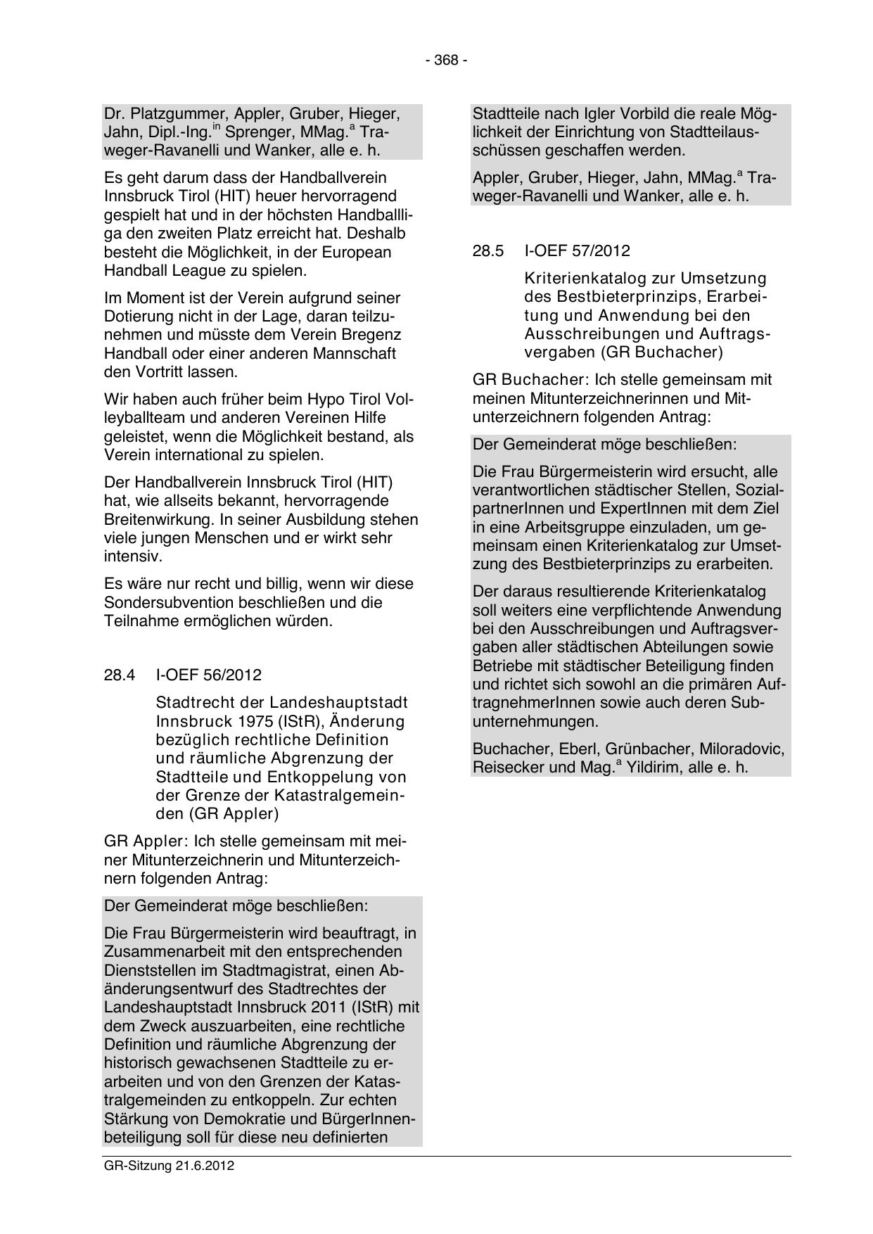 Stadtteile nach Igler Vorbild die reale Möglichkeit der Einrichtung von Stadtteilausschüssen geschaffen werden.