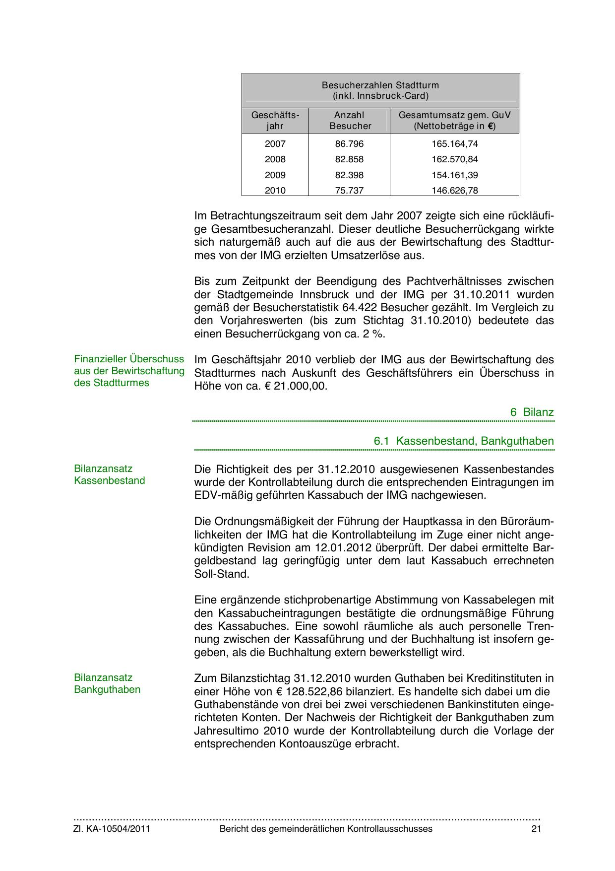 der Stadtgemeinde Innsbruck und der IMG per 31.10.2011 wurden