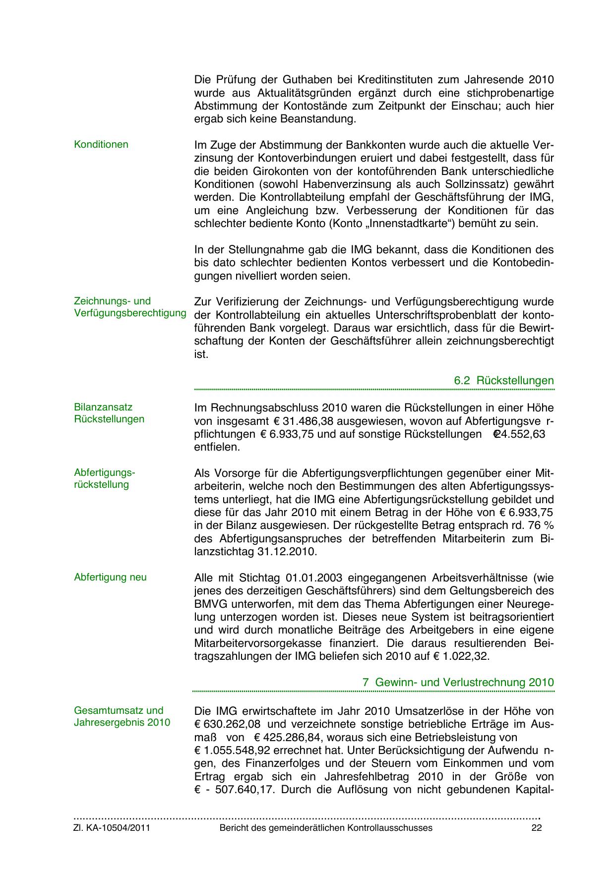 Mitarbeitervorsorgekasse finanziert. Die daraus resultierenden Beitragszahlungen der IMG beliefen sich 2010 auf € 1.022,32.