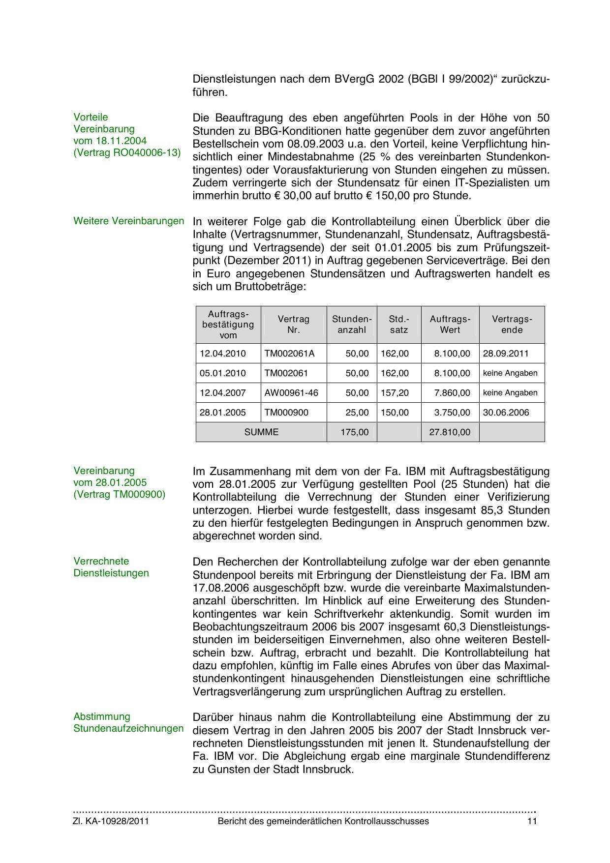 Beobachtungszeitraum 2006 bis 2007 insgesamt 60,3 Dienstleistungsstunden im beiderseitigen Einvernehmen, also ohne weiteren Bestellschein bzw. Auftrag, erbracht und bezahlt. Die Kontrollabteilung hat