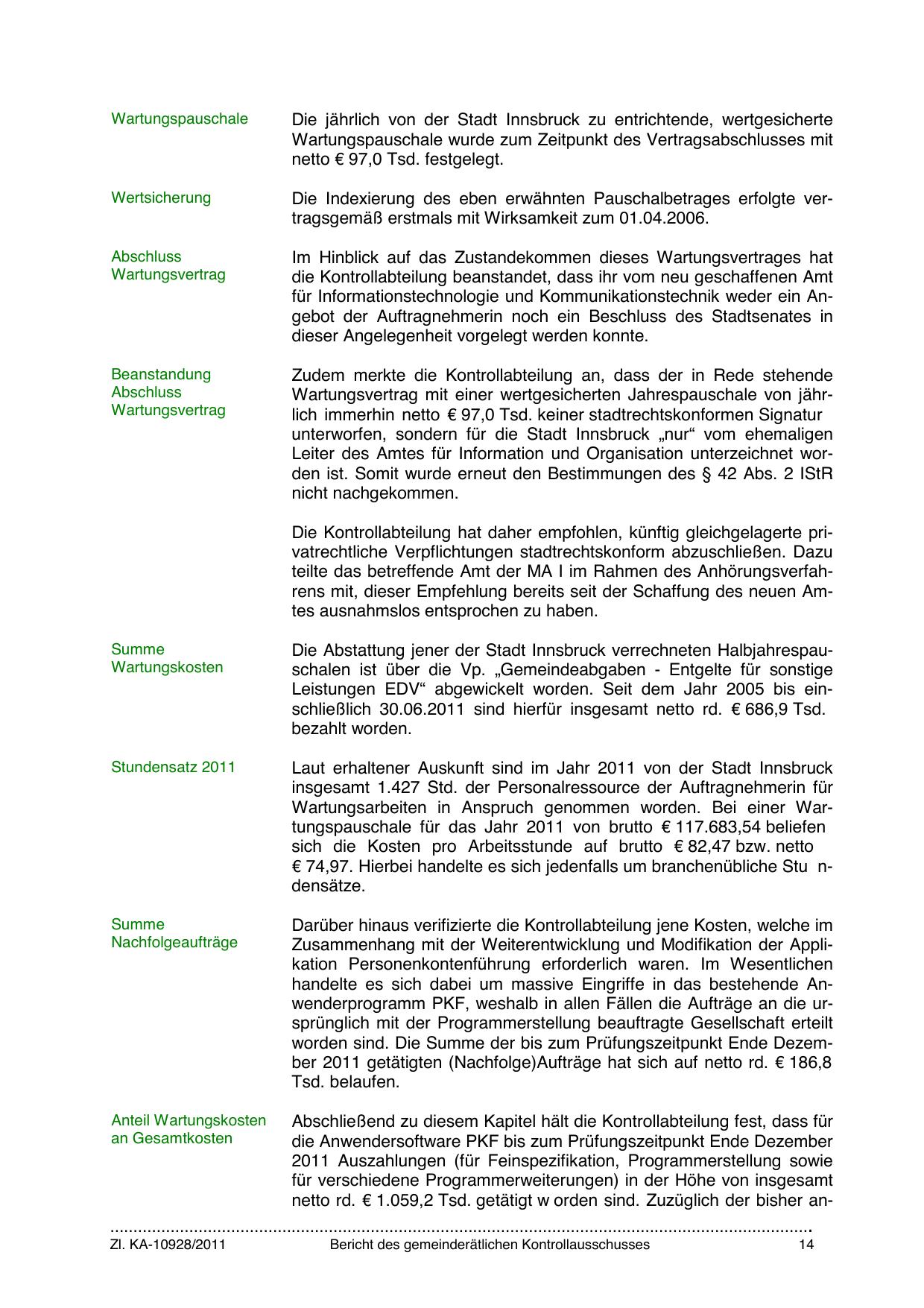 Wartungsarbeiten in Anspruch genommen worden. Bei einer Wartungspauschale für das Jahr 2011 von brutto € 117.683,54 beliefen