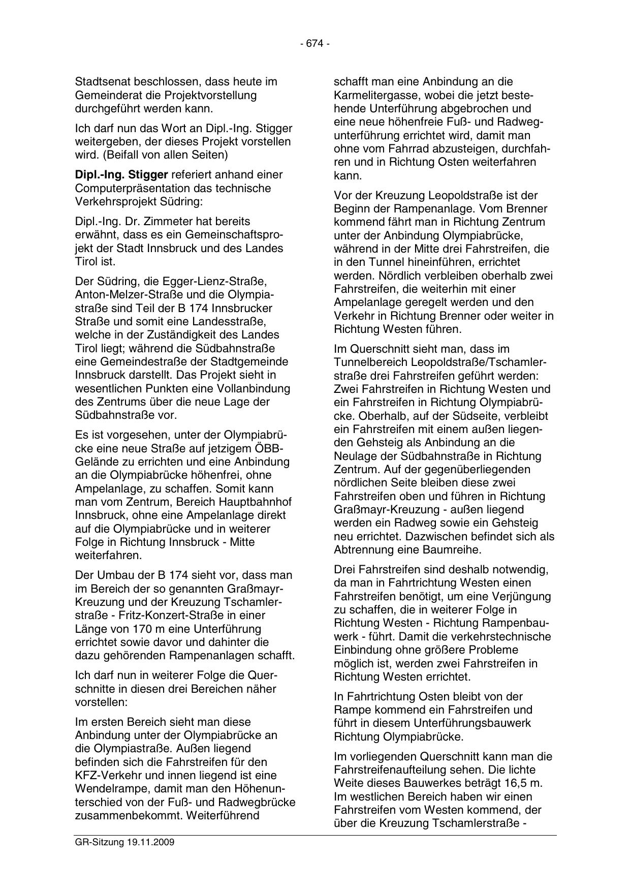 Ich darf nun das Wort an Dipl.-Ing. Stigger