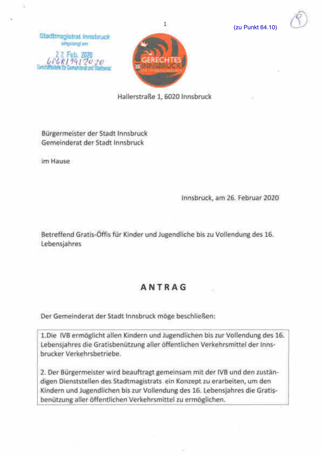 Der Gemeinderat der Stadt Innsbruck möge beschließen: