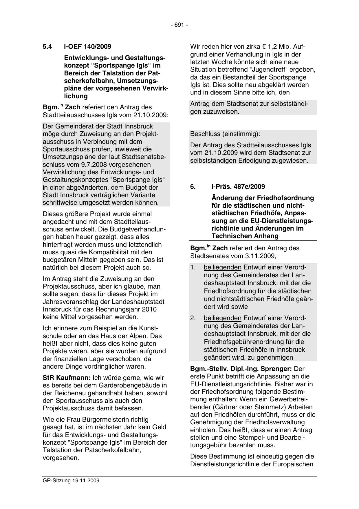 GR-Sitzung 19.11.2009