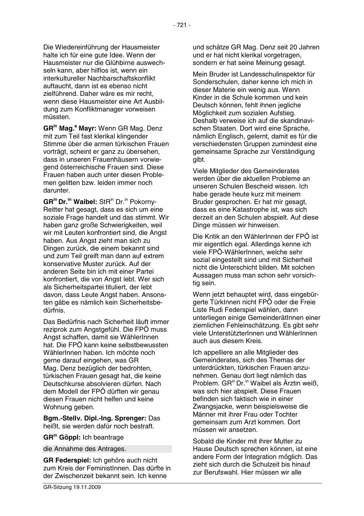 GR-Sitzung 19.11.2009